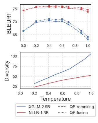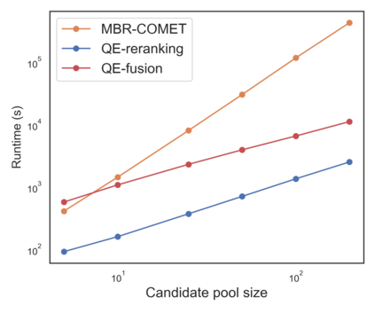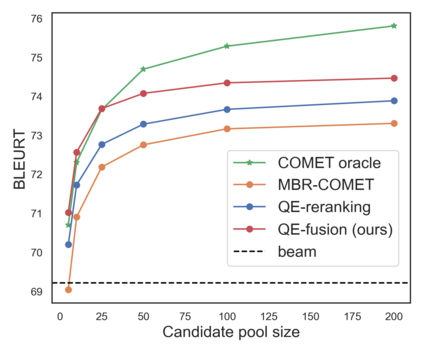 Neural machine translation systems estimate probabilities of target sentences given source sentences, yet these estimates may not align with human preferences. This work introduces QE-fusion, a method utilizing a quality estimation metric (QE) that better correlates with human judgments to synthesize improved translations. QE-fusion leverages a candidate pool sampled from a model, combining spans from different candidates using QE metrics such as CometKiwi. We compare QE-fusion against beam search and recent reranking techniques, such as Minimum Bayes Risk decoding or QE-reranking. Our method consistently improves translation quality in terms of COMET and BLEURT scores when applied to large language models (LLMs) used for translation (PolyLM, XGLM, Llama2, and Mistral) and to multilingual translation models (NLLB), over five language pairs. Notably, QE-fusion exhibits larger improvements for LLMs due to their ability to generate diverse outputs. We demonstrate that our approach generates novel translations in over half of the cases and consistently outperforms other methods across varying numbers of candidates (5-200). Furthermore, we empirically establish that QE-fusion scales linearly with the number of candidates in the pool. QE-fusion proves effective in enhancing LLM-based translation without the need for costly retraining of LLMs.