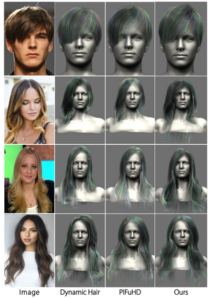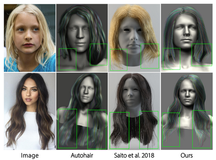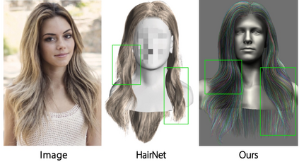 翻译:毋庸置疑, 高友谊 3D 毛发在数字人类中扮演着不可或缺的角色。 然而, 现有的单眼发型模型方法要么难以在数字系统中部署( 比如, 因为它们依赖复杂的用户互动或大型数据库), 要么只能产生粗略的几何。 在本文中, 我们引入了神经HDAir, 一个灵活、 完全自动的系统, 用单一图像来模拟高友谊毛发。 我们系统的关键推动因素是两个精心设计的神经网络: IRHairNet( 利用神经网络显示头发), 用来推断高忠诚 3D 头发几何特征( 3D 定向字段和 3D 占用域), 要么 等级化, 或 增长网络( 利用神经网络增长毛线), 以有效生成 3D 毛线 。 具体地, 我们用粗糙的、 维氧化的隐含功能( VIFu) 来代表全球的头发特征, 这一点通过从发光图中提取的地方细节得到进一步的加强。, 为了提高传统头发增长速度, 我们采用一种基于深度的深度的深度的直观的直视系统,,, 直观的直径分析, 我们采用一种基于直观的直径的直径的直径的测法, 。