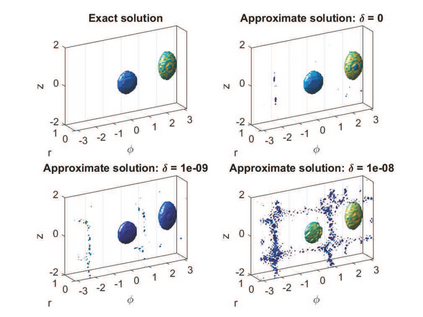 翻译:提出了在圆柱形区域对不相容的介质进行声学探测的三维二次反向问题稳定解析的新算法。 问题的数据是,在圆柱形层声学不均匀区域以外测量的波场的复杂振幅。 使用 Fourier 变形和 Fourier 序列, 反向问题被归结为解决第一种单维Fredholm 集成方程式, 以及随后计算出不均匀区域波场的复杂振幅, 然后寻找该区域所需的声速场。 算法使个人计算机平均性能的反向问题能够在数秒内为足够精细的三维电网解决。 对解决不同频率模型反向问题的拟议算法的准确性进行了数字研究, 并调查了在数据扰动方面算法的稳定性问题。