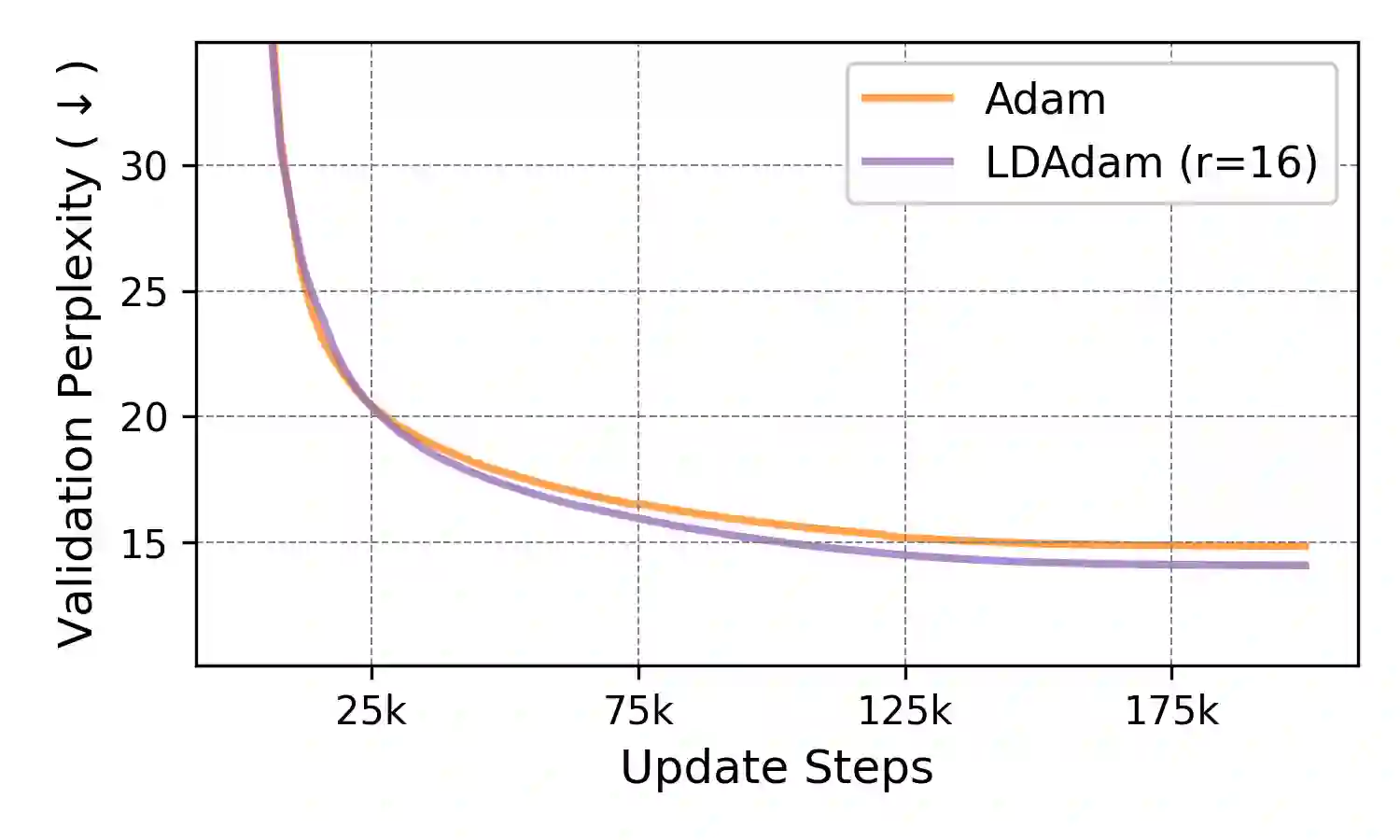 We introduce LDAdam, a memory-efficient optimizer for training large models, that performs adaptive optimization steps within lower dimensional subspaces, while consistently exploring the full parameter space during training. This strategy keeps the optimizer's memory footprint to a fraction of the model size. LDAdam relies on a new projection-aware update rule for the optimizer states that allows for transitioning between subspaces, i.e., estimation of the statistics of the projected gradients. To mitigate the errors due to low-rank projection, LDAdam integrates a new generalized error feedback mechanism, which explicitly accounts for both gradient and optimizer state compression. We prove the convergence of LDAdam under standard assumptions, and show that LDAdam allows for accurate and efficient fine-tuning and pre-training of language models.