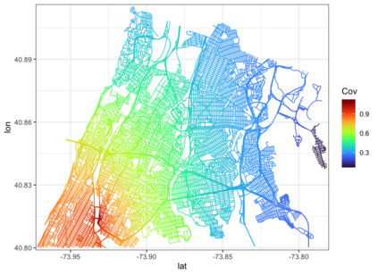翻译:我们在街道或河流网络等紧凑度图上定义一个新的高斯进程类别。 拟议的模型, Whittle- Mat\'ern 字段, 是通过紧凑度图上的分微随机偏差部分方程式来定义的, 并且是高斯域的自然延伸, 在欧几里德域的 Mat\'ern 共变函数中, 在欧几里德域上, 以非欧几里德 度图设置 。 进程的存在, 以及它们的样本路径的规律性特性 。 模型类特别包含不同的高斯进程 。 根据我们的知识, 这是在一般紧凑度图上首次构建一个有效的可区别高斯域。 然后我们集中关注一个模型子类, 显示含有有Markov 特性的进程 。 在本案中, 我们展示如何准确和有效地评估过程的有限维分布 。 这有利于在不需要任何近比值的情况下使用拟议的统计推断模型 。 最后, 我们从模型类的主要统计属性中得出一些主要统计属性, 例如, 与基于最有可能的模型参数的精确度参数 。