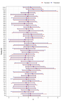 翻译:这项研究涉及对三种水平或水平结果数据的分析,在随机效应的情况下对三层次或多层次的物流回归进行分析,假定随机效应是在逻辑链接的桥状分布后产生的,从而可以对回归系数进行边际解释。这些数据来自土耳其收入和生活条件研究,其结果变量是自我评定的健康状况(SRH),该变量具有交替性质。这些数据的分析是比较共变分组,并用SRH的预测性检查来推断所观察到的数据的地域和家庭层面的推论。根据Bayesian模式,从联合的后方密度中抽样测出参数和随机效应。在模式选择中使用了三种标准:可忽略信息标准、假冒的边缘可能性和偏离信息标准。所有三个标准都表明,我们需要对区域和家庭层面的不稳定性进行核算,以模拟SRHW。通过事后预测性检查来审查这些模型复制所观察到的数据的较贫穷程度。在SRRH中发现的一些参数和随机效应在经济和人口密度方面差异最小,在19个地区,参与调查的农村居民和一些比较的概率是比较的农村人口。