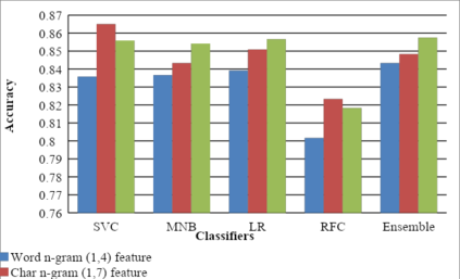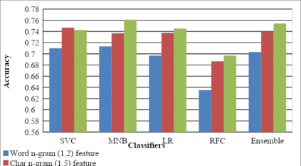 翻译:本文描述了由我们的团队KBCNMUJAL提交的系统,即我们团队KBCNMUJAL在信息检索评价论坛(信息检索评价论坛,2020年12月16日至20日,印度海得拉巴,印度海得拉巴)上提交的仇恨言语和攻击性内容识别共同任务任务任务2的任务2。两种Dravidian语言的数据集Viz、Malayalam和泰米尔大小4000的观测由HASOC组织者共享。这些数据集用于使用基于分类和回归模型的不同机器学习算法对机器进行培训。数据集包括Twitter或YouTube评论,其中两个类标签是攻击性的,而不是攻击性的。该机器经过训练,可以将这类社交媒体信息信息信息分为两类。适当的 ngram 数据集将学习仇恨言论短信的具体特性。这些功能模型以N-gram的TFIDF重量为基础。上述工作和相关实验显示,可以使用词、性质和性格的模型模型等特征来确定攻击性文字内容的术语模式。作为HASOC共享任务的一部分,用于进行该类的模型共享任务,测试数据系统,用于进行该测试。