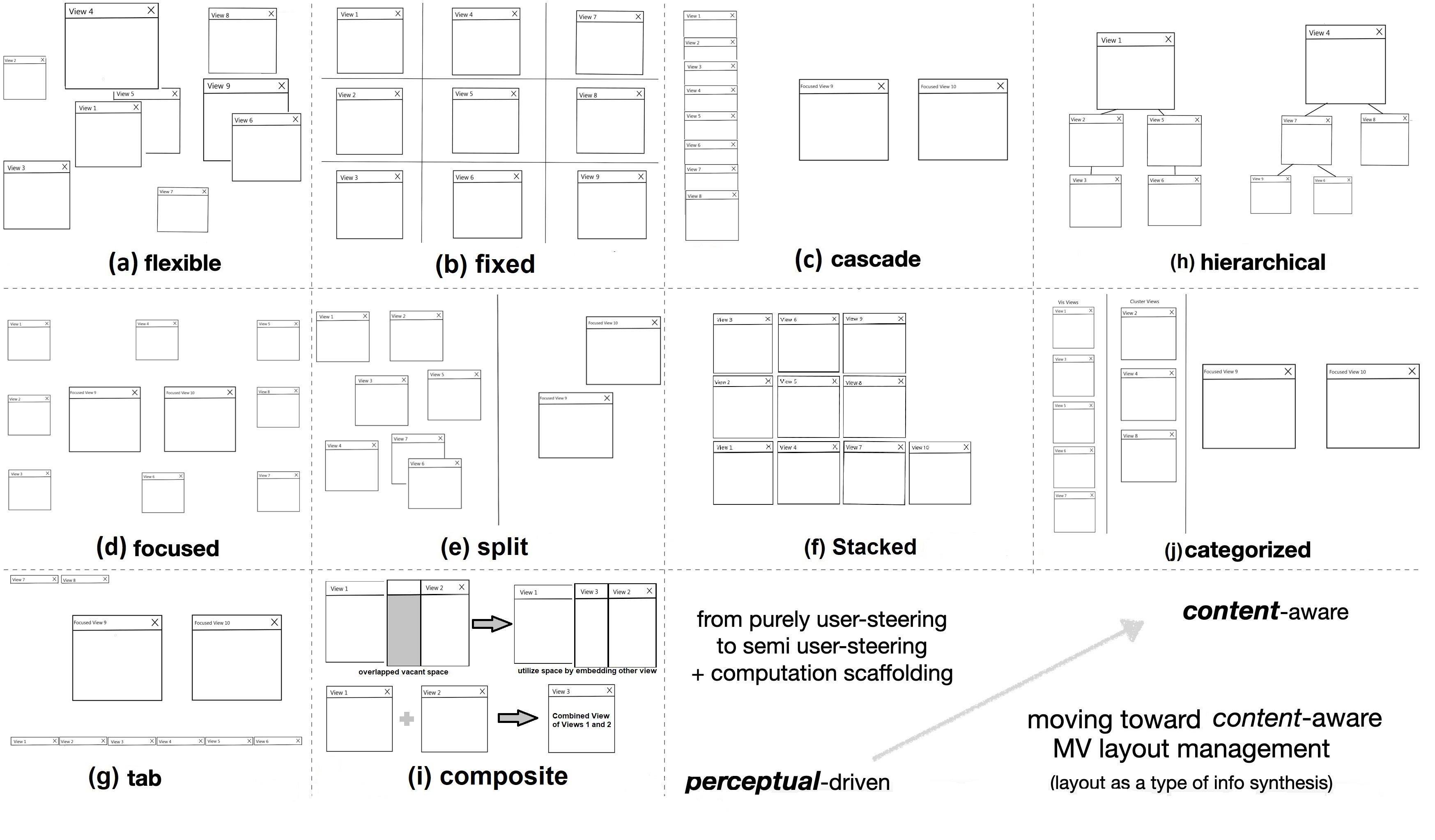翻译:多视图可视化(MV)在各个领域(例如生物信息学、网络安全和情报分析)用于视觉分析。由于每种观点都从特定角度对数据进行编码,分析师往往使用2D空间中列出的一系列观点来连接和综合信息。这一过程的困难受到这些观点的空间组织的影响。例如,从不同观点中相互连接信息比相邻观点更具挑战性。然而,大多数视觉分析工具目前要么确定观点的位置,要么将观点组织完全委托给用户(必须手动拖动和移动观点)。这要么限制了用户对MV布局管理的参与,要么过于灵活,没有多少指导。然后,MV布局中的关键设计挑战就是确定影响理解的空间组织中的各种因素。为了解决这一问题,我们审查一组基于MV的系统,并找出基于以下两个关键问题的MV布局考虑:认知,它考虑用户如何看待观点关系,内容如何考虑数据中的关系。我们展示了这些如何使我们能够系统地研究和分析MV布局的设计。
