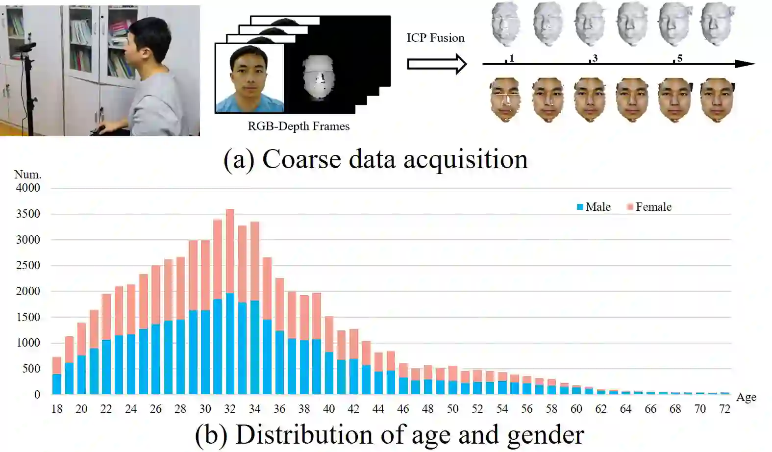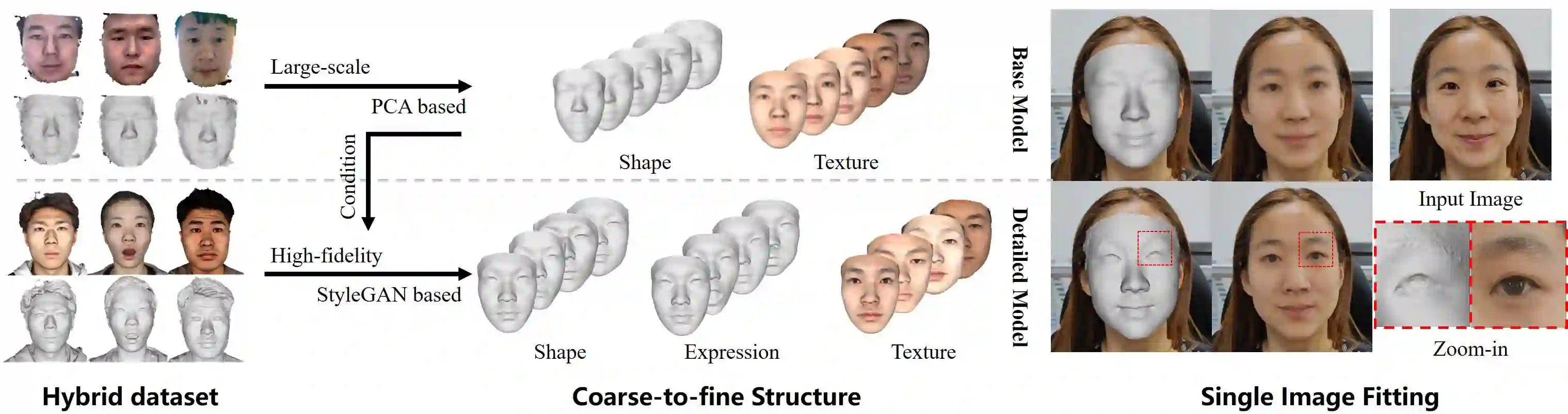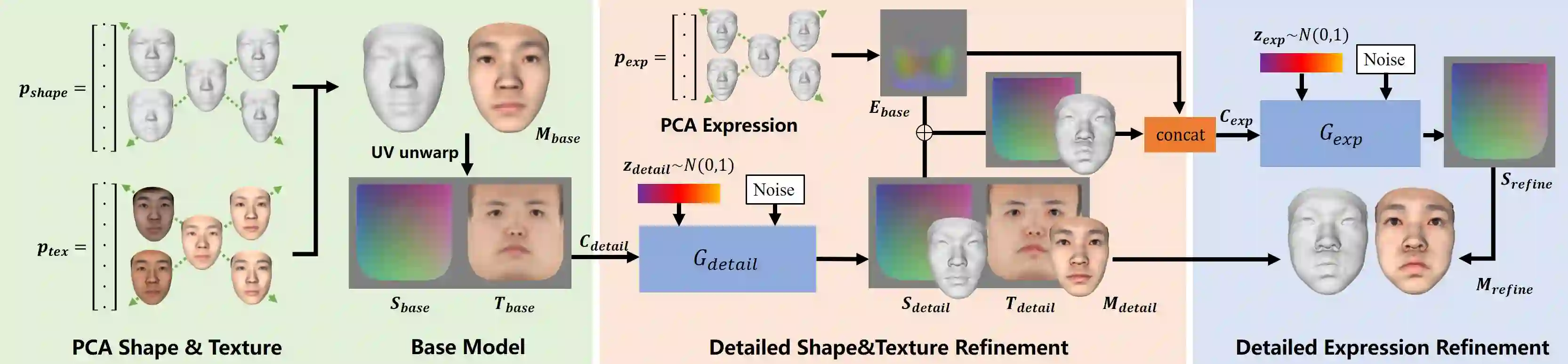 翻译:我们展示了FaceVerse(FaceVerse),这是一个精细的3D神经面部模型,它由东亚混合面部数据集组成,包含60K Feded RGB-D图像和2K高纤维3D头扫瞄模型。我们建议了一个新的粗略至软结构,以更好地利用我们的混合数据集。在粗糙的模块中,我们从大型 RGB-D 图像中生成了一个基础参数模型,能够预测不同性别、年龄等的准确的粗略3D面部模型。然后,在精细模块中,引入了一个有条件的StyleGAN结构,该结构由高纤维扫描模型培训,以丰富精心设计的面部几何和纹理细节。注意到与以往方法不同,我们的基础和详细的模块都是可更改的,从而能够创新地应用调整3D 面部模型的基本属性和面部细节。此外,我们提出了一个基于不同图像的单一图像匹配框架。丰富的实验显示,我们的方法超过了最先进的方法。