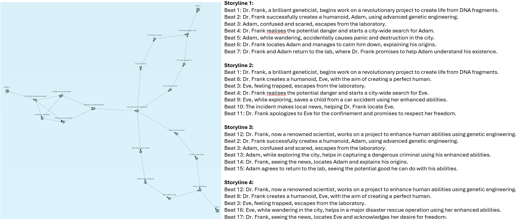 Dialogue-based Role Playing Games (RPGs) require powerful storytelling. The narratives of these may take years to write and typically involve a large creative team. In this work, we demonstrate the potential of large generative text models to assist this process. \textbf{GRIM}, a prototype \textbf{GR}aph-based \textbf{I}nteractive narrative visualization system for ga\textbf{M}es, generates a rich narrative graph with branching storylines that match a high-level narrative description and constraints provided by the designer. Game designers can interactively edit the graph by automatically generating new sub-graphs that fit the edits within the original narrative and constraints. We illustrate the use of \textbf{GRIM} in conjunction with GPT-4, generating branching narratives for four well-known stories with different contextual constraints.
