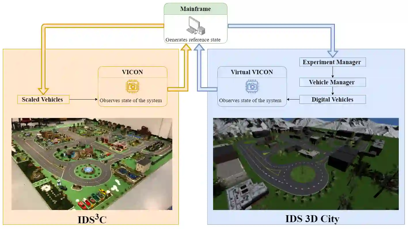 翻译:由于对与连接和自动化车辆有关的新兴流动系统的需求日益增加,因此有必要建立高质量的测试环境,以支持这些系统的发展。在本文件中,我们为新兴的流动系统引入了基于团结的虚拟模拟环境,称为信息和决策科学实验室的智能数字城市(IDS $3D City),目的是与物理同行和既定的控制框架并肩运作。我们利用机器人操作系统、AirSim和Unity,构建了一个模拟环境,能够比在物理测试台进行可能的迭接设计实验快得多。这个环境为验证我们在物理测试台实施控制算法之前的有效性提供了一个中间步骤。 IDS $3D 也使我们能够证明我们的控制算法独立于基本车辆动态,因为AirSim引进的车辆动态以不同于我们规模智能城市的规模运作。最后,我们通过在虚拟和物理环境中进行实验并比较其产出,展示了我们数字环境的行为。