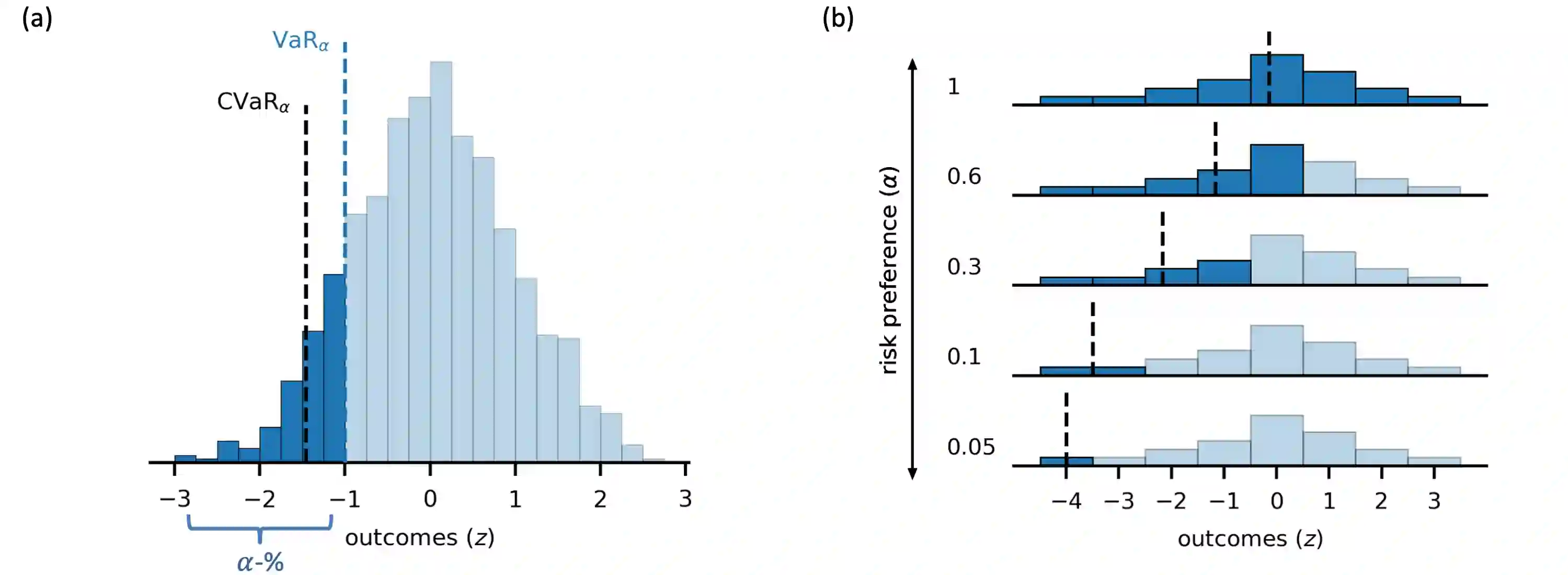 翻译:分配强化学习(RL) -- -- 使代理人了解其行为的所有可能的长期后果,而不仅仅是预期价值 -- -- 在最近引起极大兴趣。分配观点最重要的保障之一是,当结果不完全确定时,促进一种现代的、衡量的、风险的方法。相比之下,对风险决策的心理和神经科学研究利用了各种更可贵的理论模型,例如缺乏一致等同性理想特性的前景理论。在这里,我们考虑了一种特别相关的人类和动物规划模型风险评估措施,称为有条件的值风险(CVAR),它量化了最坏情况的结果(例如,车辆事故或预兆)。我们首先在顺序上对CVaR采取了传统的分配方法,重新分析人类决策者在众所周知的两步任务中的选择,揭示了在粘性与耐性之间潜伏下的重大风险转换。我们随后考虑了一种更关键的风险敏感性特性,即时间一致性,展示了这种方式的替代方法在CVA模型中具有不同形式的模型,我们在这种模型中使用了不同的方式。