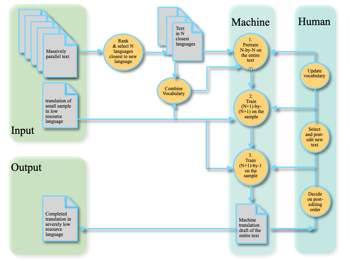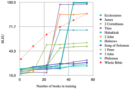 翻译:我们把预先知道的、以多种语言提供的封闭文本翻译成新的、极低的资源语言; 多数人翻译工作都采用基于比例的方法,按顺序翻译连续的页面/章节,这也许不适合机器翻译; 我们比较了当地文本最一致的基于比例的方法,与增加全球文本覆盖面的随机抽样方法之间的最佳程度; 我们的结果表明随机抽样方法表现得更好; 当关于圣经的~1,000行的种子材料的培训和对圣经其余部分的测试(约30,000行),随机抽样使使用英语模拟低资源语言的+111.0 BLEU的性能增益, 以及使用玛雅语东波肯奇的+4.9 BLEU的+4.9 BLEU。 此外,我们还比较了三种更新机器翻译模型的方法,通过迭代法将越来越多的经过编辑后的数据与不断增多的人类数据进行比较。 我们发现,在没有自我监督的情况下,在词汇更新后,在培训中增加新的经过编辑的数据是最好的。 我们建议为人类和机器提出一种无缝合力的算法,将封闭的文本翻译成非常低的资源语言。