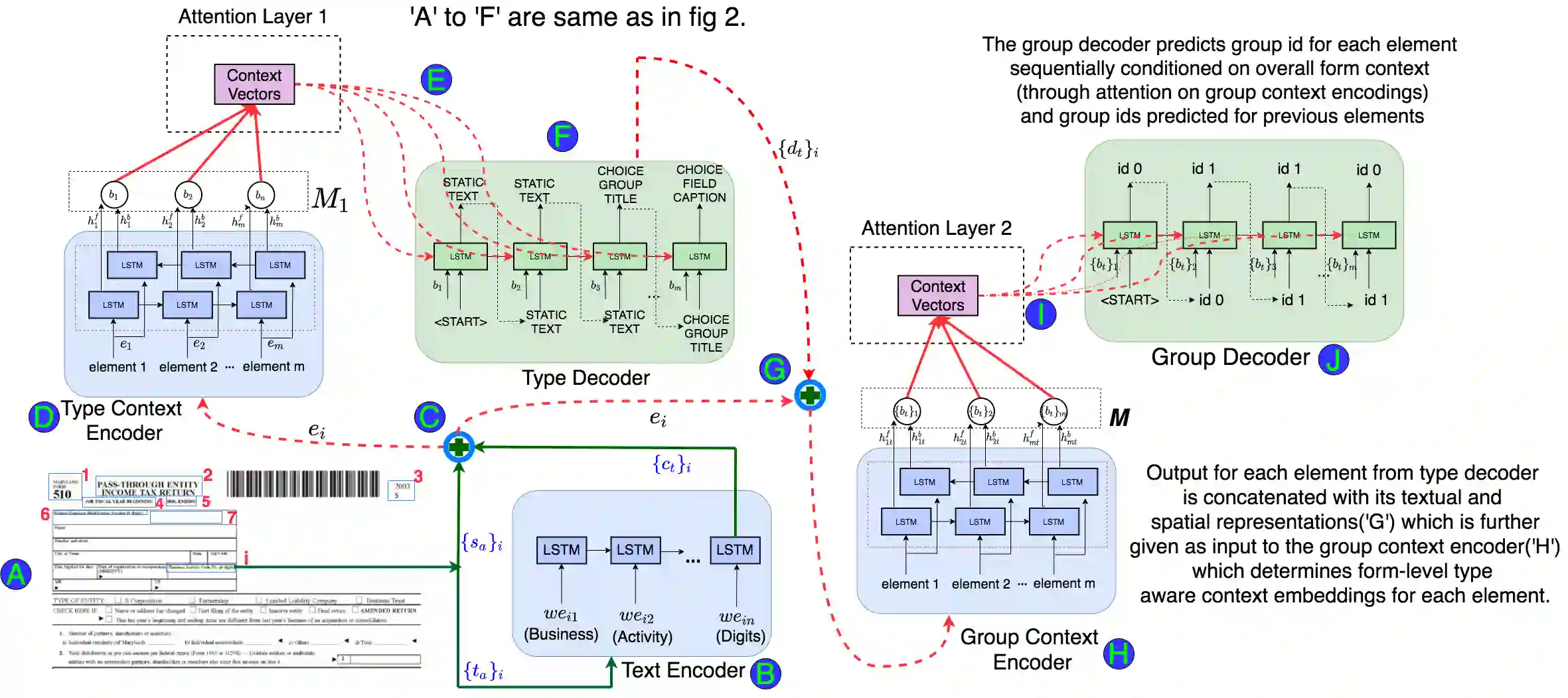 翻译:数十年来,文档结构提取一直是一个广泛研究的领域,最近的工作是利用全演网络对文档图像进行语义分解任务,使用全演网络对文档图像进行语义分解任务。这些方法受到图像分辨率的限制,因为其无法分解常见形式的稠密区域的结构。为此,我们提议了Form2Seqeq,即一个创新的按顺序排序(Seq2Seq63)的利用文本进行结构提取的框架,其具体重点是利用结构相对空间安排的表格。我们讨论了两个任务:(1) 将低级构成元素(TextBlock和空可填充元)分类为10种类型,如外地说明、列表项目和其他;(2) 将较低级别的元素分组成更高层次结构,如文本字段、选择字段和选择组,作为形式的信息收集机制。为此,我们将结构的构成要素按线性排列为自然阅读顺序,将其基于空间和文字的表达方式提供给Seq2Seq2Seqeq框架,根据最终任务按顺序对每个要素进行输出预测。我们修改Seq2Seq2Sseal2Seqeqealal-lavialalalalalalalalalalal-laview laview laview 工作,我们分别在Sildal 上完成了Slievalal-traal-traal-traal-laview laviewxal 工作, 工作,在Sildal-laview-traal-traal-traal-traal-laview-ladal-ladal-traal-laction-labal-labal-traal-ladal-ladal-ladal-ladal-ladal-labaldal-labal-ladal-ladal-ladaldal-ladal-ladal-ladal-ladal-ladal-ladal-ladal-ladal-lad-lad-ladal-lad-lad-lad-lad-lad-lad-lad-lad-lad-lad-lad-lad-lad-lad-lad-lad-