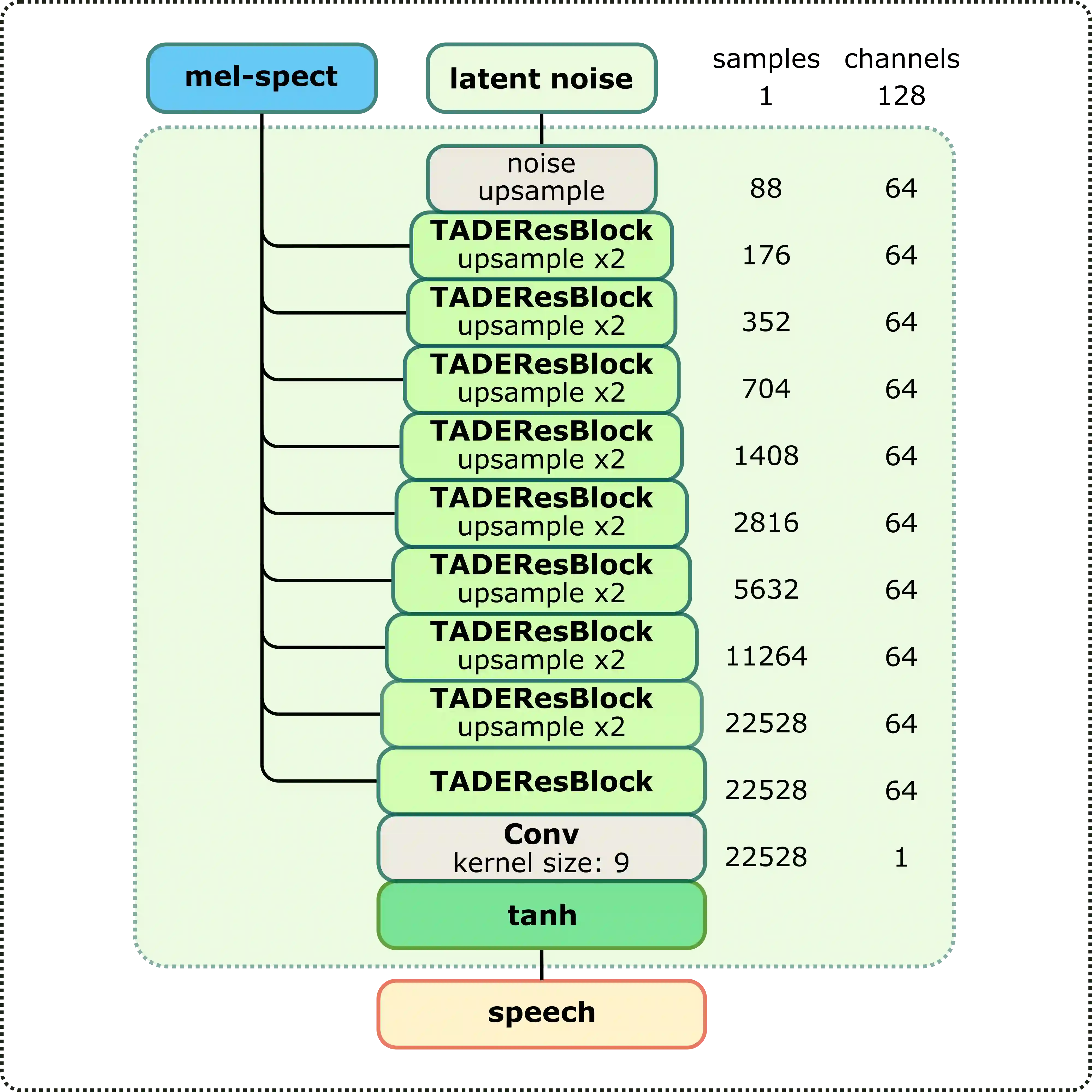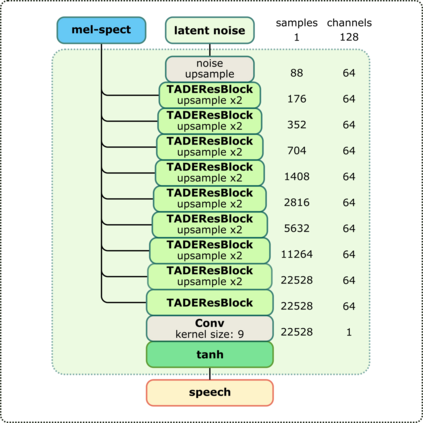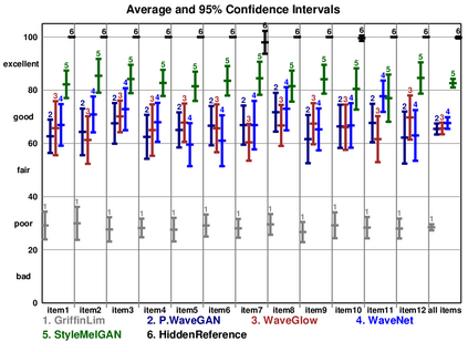 翻译:近些年来,神经电动器在合成语音的自然性和感知质量方面超过了典型的语音生成方法。WaveNet和WaveGlow等重度模型取得了最佳效果,而轻量级GAN模型,如MelGAN和平行WaveGAN等,在感知质量方面仍然低劣。因此,我们提议StyleMelGAN,一个轻量级神经电动器,可以将高纤维语言与低计算复杂度合成。StyleMelGAN采用时间适应性正常化,对带有目标演讲声学特征的低维度噪音矢量进行风格化。为了高效培训,多个随机窗口歧视者对由过滤库分析的语音信号进行对抗性评价,由多尺度光谱重建损失提供正规化。在CPUs和GPUPS上,高度平行的语音生成数倍于实时时间。MUSHRA和P.800听力测试显示SylMelGAN在复制和文本到Speet-Speech情景中超越了前神经变形。