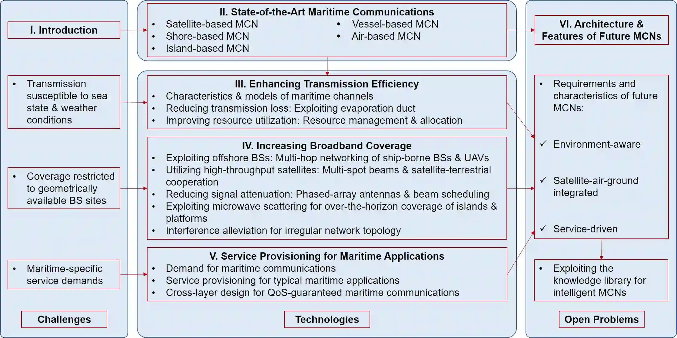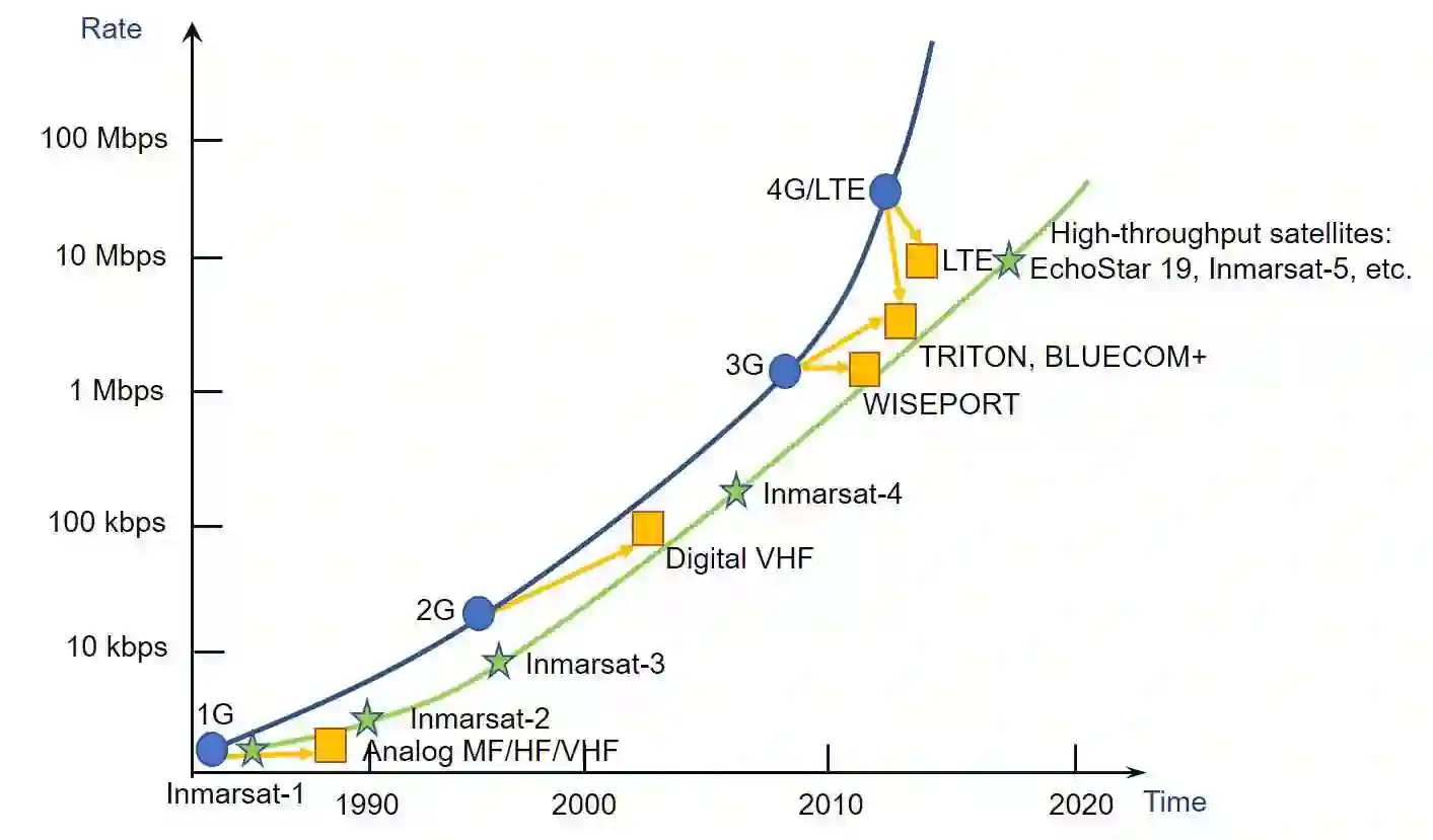 翻译:随着海洋活动的迅速发展,海洋移动终端数量不断增加,对高速和超可靠海上通信的需求也不断增加,以保持这些通信的连接。传统上,海洋物质互联网(IoT)是由海洋卫星促成的。然而,卫星受到高度隐蔽和相对较低的数据率的严重限制。作为替代办法,可以建造海岸和岛屿基地站,以扩大地面网络的覆盖面,利用第四代(4G)、第五代(5G)和超过5G的服务。无人驾驶航空飞行器也可以被用来充当空中海上BS。尽管采取了所有这些办法,但高效海洋通信网络(MCN)仍然存在一些尚未解决的问题。例如,由于电磁通信环境复杂,现有BS站的地理测量有限,以及任务关键应用、传统通信和网络理论及方法的严格服务需求,应当适合海洋情况。为此,我们还对海洋通信的需求、最先进的MCN条件以及未来航空服务方面的关键性技术进行了调查。在提高海上信息传输效率方面,将遥感网络的覆盖面和智能化服务扩展到了海运。