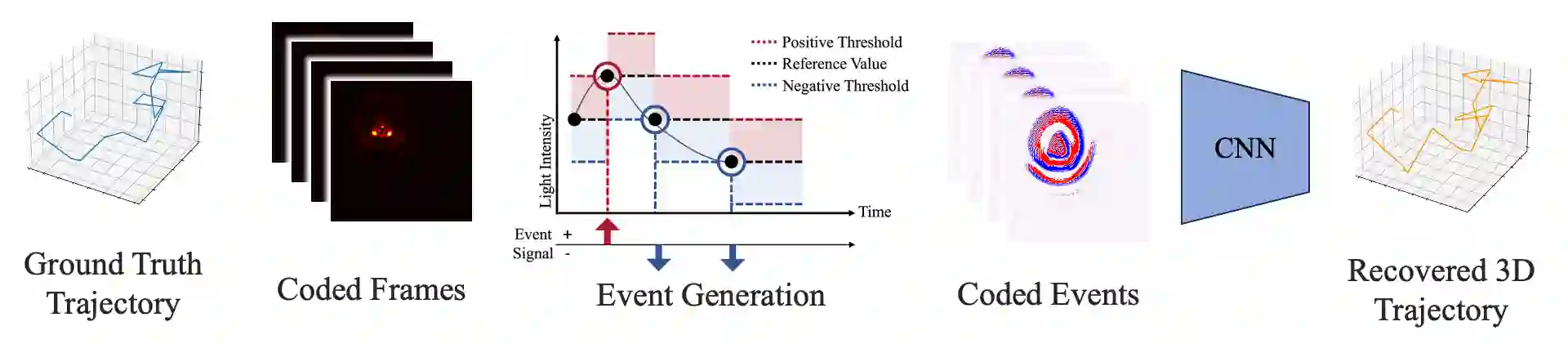 Point-spread-function (PSF) engineering is a well-established computational imaging technique that uses phase masks and other optical elements to embed extra information (e.g., depth) into the images captured by conventional CMOS image sensors. To date, however, PSF-engineering has not been applied to neuromorphic event cameras; a powerful new image sensing technology that responds to changes in the log-intensity of light. This paper establishes theoretical limits (Cram\'er Rao bounds) on 3D point localization and tracking with PSF-engineered event cameras. Using these bounds, we first demonstrate that existing Fisher phase masks are already near-optimal for localizing static flashing point sources (e.g., blinking fluorescent molecules). We then demonstrate that existing designs are sub-optimal for tracking moving point sources and proceed to use our theory to design optimal phase masks and binary amplitude masks for this task. To overcome the non-convexity of the design problem, we leverage novel implicit neural representation based parameterizations of the phase and amplitude masks. We demonstrate the efficacy of our designs through extensive simulations. We also validate our method with a simple prototype.