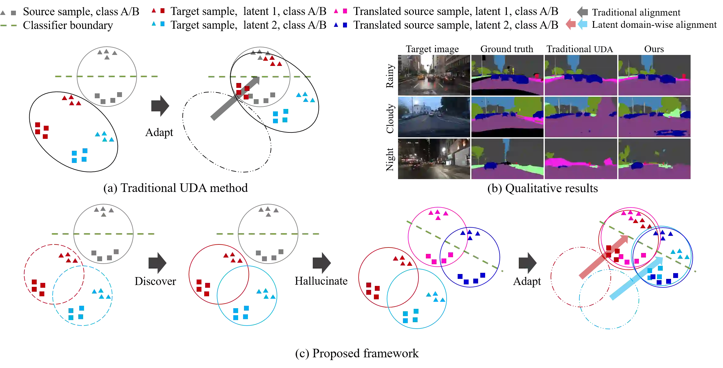 翻译:用于语义分解的未受监督域适应(UDA)最近引起注意,因为它可能有益于各种标签偏差现实世界情景(例如,机器人控制、自主驾驶、医疗成像等)。尽管在这一领域取得了显著进展,但目前的工作主要侧重于单一源单一目标设置,无法处理多个目标甚至看不见目标更实际的设置。在本文件中,我们调查了同时处理混合和新情况、用于语义分解的开放复合域适应(OCDA),我们提出了一个基于三大主要设计原则的新框架:发现、幻觉和适应。这个方案首先组群集基于风格、发现多个潜在领域(发现)的组合目标数据。然后,它通过图像转换(光栅)在源中产生多种潜在目标领域幻觉。这个步骤确保源和目标对齐的隐蔽领域。最后,目标对源调整是在不同领域(适应)分别学习的。在高层次上,我们的解决办法取代了硬性 OCDA 问题,以更简单得多的标准UDA 。