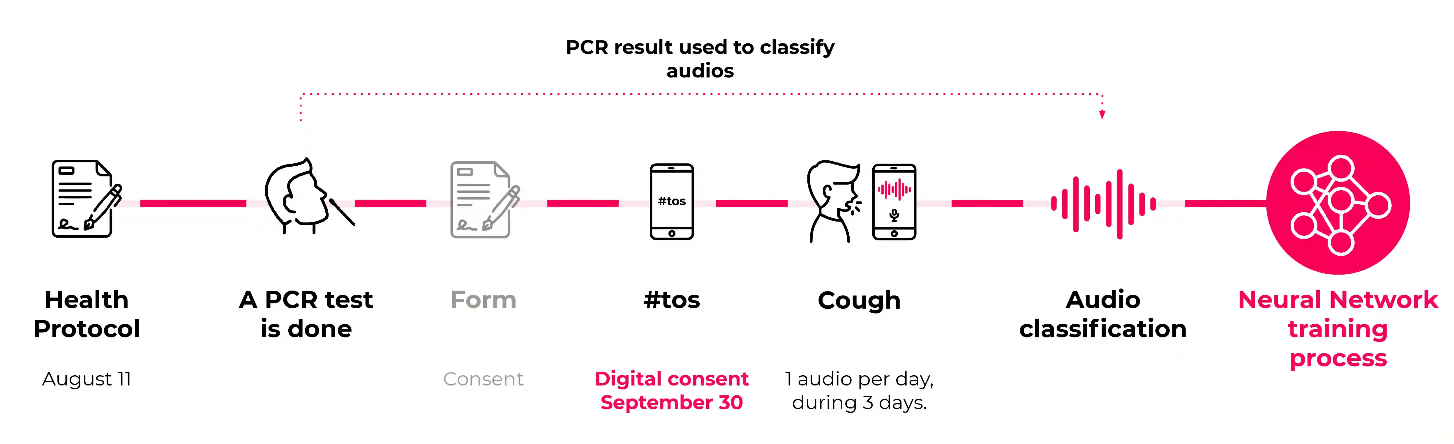 OBJECTIVE: Our objective is to evaluate the possibility of using cough audio recordings (spontaneous or simulated) to detect sound patterns in people who are diagnosed with COVID-19. The research question that led our work was: what is the sensitivity and specificity of a machine learning based COVID-19 cough classifier, using RT-PCR tests as gold standard? SETTING: The audio samples that were collected for this study belong to individuals who were swabbed in the City of Buenos Aires in 20 public and 1 private facilities where RT-PCR studies were carried out on patients suspected of COVID, and 14 out-of-hospital isolation units for patients with confirmed COVID mild cases. The audios were collected through the Buenos Aires city government WhatsApp chatbot that was specifically designed to address citizen inquiries related to the coronavirus pandemic (COVID-19). PARTICIPANTS: The data collected corresponds to 2821 individuals who were swabbed in the City of Buenos Aires, between August 11 and December 2, 2020. Individuals were divided into 1409 that tested positive for COVID-19 and 1412 that tested negative. From this sample group, 52.6% of the individuals were female and 47.4% were male. 2.5% were between the age of 0 and 20 , 61.1% between the age of 21 and 40 , 30.3% between the age of 41 and 60 and 6.1% were over 61 years of age. RESULTS: Using the dataset of 2821 individuals our results showed that the neural network classifier was able to discriminate between the COVID-19 positive and the healthy coughs with an accuracy of 88%. This accuracy obtained during the training process was later tested and confirmed with a second dataset corresponding to 492 individuals.