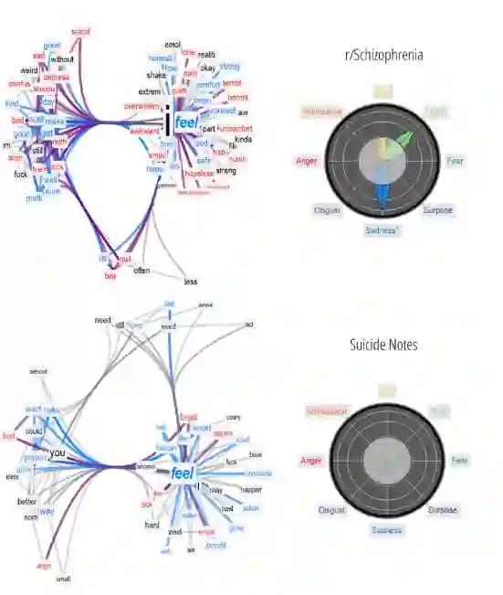 翻译:写信息是表达情感的关键。 本研究采用认知网络科学, 重建个人如何在诸如自杀笔记或心理健康站等临床叙事中表达自己的感受。 我们通过重建文本中的概念之间的综合/ 语义联系, 以情感数据丰富。 我们改造了来自r/ axie、r/ depression、r/ schizoprenia、r/ do-it-own(r/ DIY) 和r/ do- own(r/ DIY) 论坛的142个自杀笔记和77 000 Reddit 站点, 将个人在诸如自杀笔记、r/ depression、r/ deal- own(r/DIY) 等临床描述中的个人表达意义和情感表达意义。 这些负面的关联和情感关系, 包括: 以信任/ decrevical commal commissionalalalation 、 以信任/ devolutionalal commalal exalal ex、 imal dealalal exal exal usation ex、 us the the exal imal exal deal deal subliversal ex、 ex、 ex、 exal democudrevental dismal ex、 ex、 uscudrevental ex、 ex、 ex、 exal ex、 ex、 ex、 ex、 exalalalalalalal exal exalcudrevideal deliversal ex、 ex、提供 ex、 ex、 ex、 ex、 exal exal exsubalal exalalalalalalalalalalalalalalalalalalalalalalalalalalalalalalalalalalalalalalalalalalalalalalalalalalalalalalalalalalalalalalalal ex、提供 和salal ex、 和salalalalalalalalalalalalalalalalalalalalalalalalalal ex、 ex、提供我们立、提供我们的