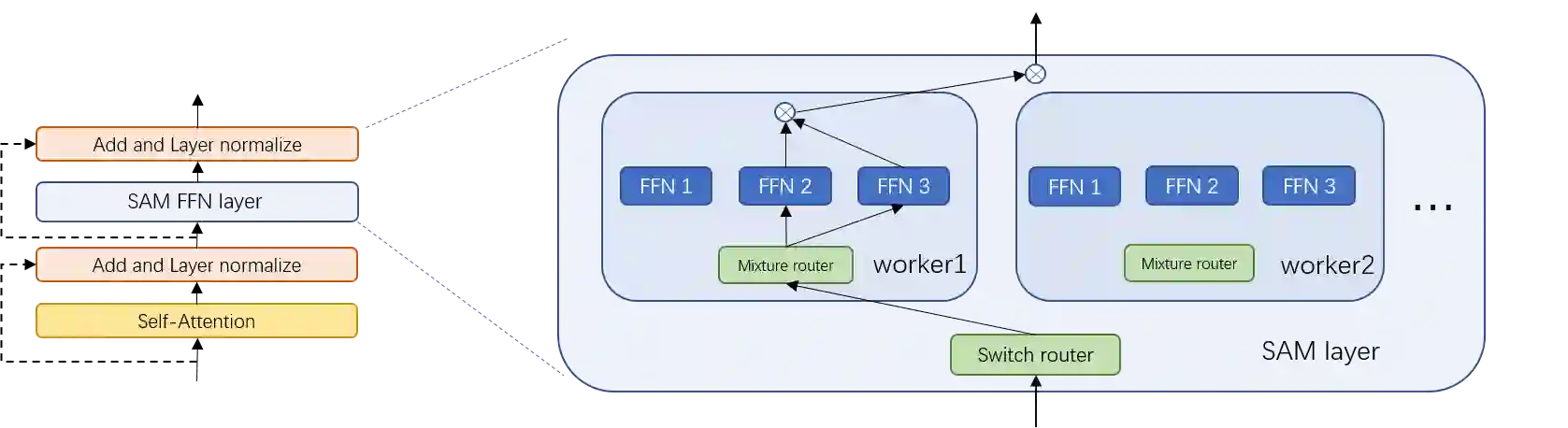 翻译:由于通信成本有限,在培训和推论期间,很难负担得起多专家的启动费用。因此,以往的工作通常每次只激活一名专家,以减轻额外的通信费用。这种路由机制限制了模型性能的上限。在本文件中,我们首先调查了一种现象,即增加活跃专家的人数可以提高模型性能,而少得可怜。为了增加活跃专家的人数,而不增加计算成本,我们提议采用SAM(变换和混合)路由,即高效的分层路由机制,即在同一设备中激活多位专家(GPU),我们的方法展示了对极为稀少模型的培训以及实验,证明我们的模式可以大大提高效率,从而取得显著的业绩收益。