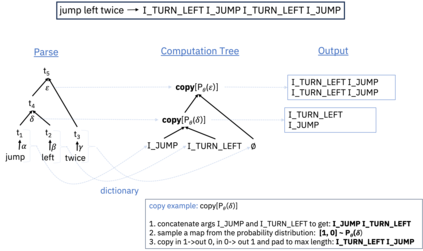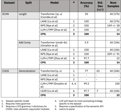 Compositional generalization is a key ability of humans that enables us to learn new concepts from only a handful examples. Neural machine learning models, including the now ubiquitous Transformers, struggle to generalize in this way, and typically require thousands of examples of a concept during training in order to generalize meaningfully. This difference in ability between humans and artificial neural architectures, motivates this study on a neuro-symbolic architecture called the Compositional Program Generator (CPG). CPG has three key features: \textit{modularity}, \textit{composition}, and \textit{abstraction}, in the form of grammar rules, that enable it to generalize both systematically to new concepts in a few-shot manner, as well as productively by length on various sequence-to-sequence language tasks. For each input, CPG uses a grammar of the input language and a parser to generate a parse in which each grammar rule is assigned its own unique semantic module, a probabilistic copy or substitution program. Instances with the same parse are always processed with the same composed modules, while those with different parses may be processed with different modules. CPG learns parameters for the modules and is able to learn the semantics for new rules and types incrementally, without forgetting or retraining on rules it's already seen. It achieves perfect generalization on both the SCAN and COGS benchmarks using just 14 examples for SCAN and 22 examples for COGS -- state-of-the-art accuracy with a 1000x improvement in sample efficiency.