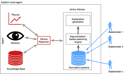 翻译:自主系统是由制造商建造的,在受规范和法律制约的社会中运作,并与终端用户互动。所有这些行为者都是受自主系统行为影响的利益攸关方。我们应对如何将此类利益攸关方的道德观点纳入自主系统行为的挑战。我们提议一个道德建议部分,我们称之为Jimini,它使用规范系统的技术以及正式论证,在利益攸关方之间达成道德协议。Jimini通过使用规范系统代表每个利益攸关方的道德观点,并有三种方式解决涉及利益攸关方观点的道德困境。首先,Jimini考虑利益攸关方的论点如何相互关联,这可能会解决这一难题。第二,Jimini将利益攸关方的规范系统结合起来,使利益攸关方的专业知识能够解决这一难题。第三,只有这两种方法都失败了,Jimini才使用对背景敏感的规则来决定哪些利益攸关方偏好。在抽象层面上,这三种方法的特点是增加了论据,在争论中增加了攻击,在争论中消除了攻击。我们展示了Jimini如何使用道德解释,而不是为道德推理和决定提供合作行为。我们展示了如何使用Jimini的行为。