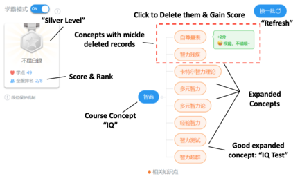 翻译:随着大规模开放在线课程(MOOCs)越来越受欢迎,它有望自动为MOOC用户提供课外知识。由于语义漂移和缺乏知识指导,现有方法无法在复杂的MOOC环境中有效地扩展课程概念。在本文中,我们首先在通过外部知识库寻找新概念时建立新的界限,然后利用多种特征来核实高质量的结果。此外,为了将人类的努力纳入我们的模型,我们还设计了一个基于游戏的互动式优化机制。我们对Couralesra和XueltangX的四套数据集的实验表明,拟议方法比现有方法(MAP+0.19)取得了显著改进。源代码和数据集已经公布。