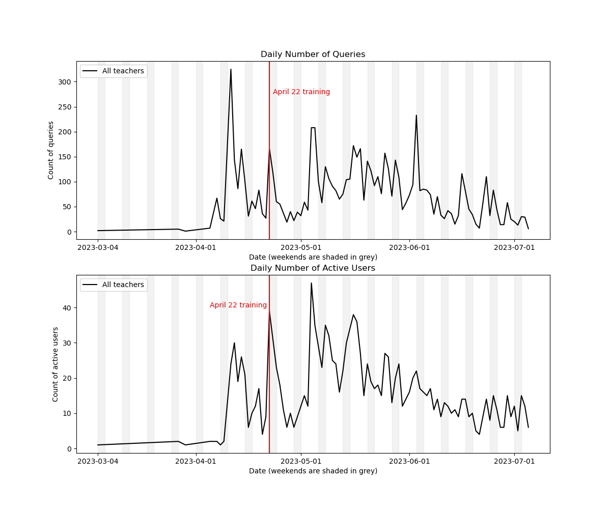 Education systems in developing countries have few resources to serve large, poor populations. How might generative AI integrate into classrooms? This paper introduces an AI chatbot designed to assist teachers in Sierra Leone with professional development to improve their instruction. We describe initial findings from early implementation across 122 schools and 193 teachers, and analyze its use with qualitative observations and by analyzing queries. Teachers use the system for lesson planning, classroom management, and subject matter. A subset of teachers use the system intensively. We draw conclusions from these findings about how generative AI systems can be integrated into school systems in low income countries.