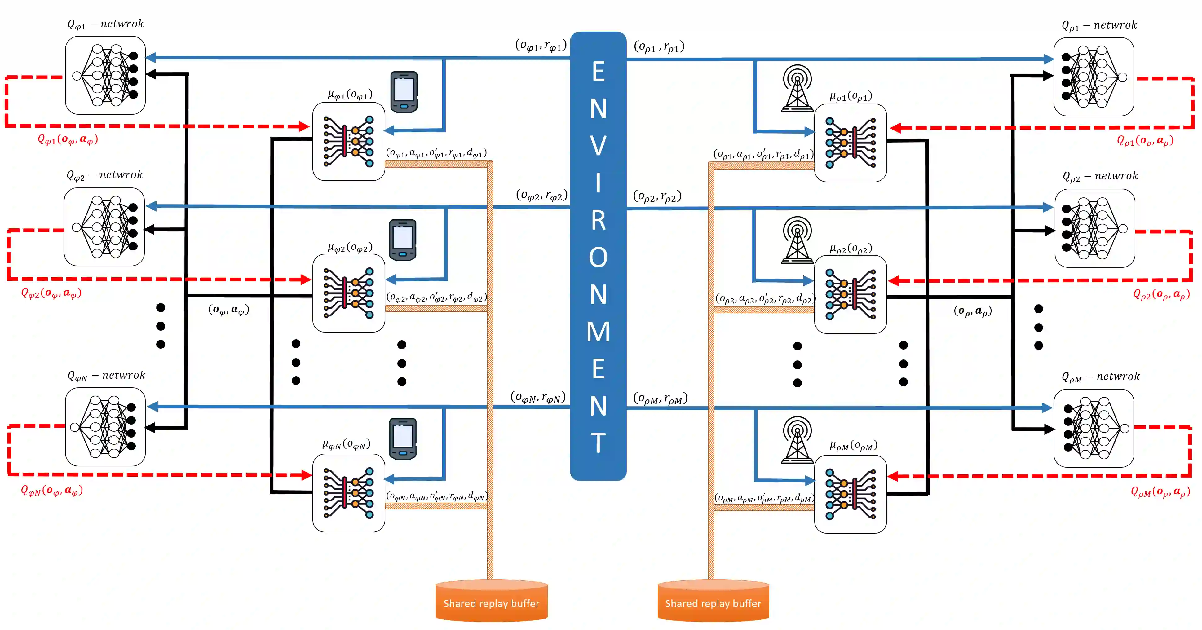 翻译:移动装置的快速生产以及无线应用的繁荣正在日复一日地发展,这促使利用多个无线电接入技术(多RAT)开发无线频谱,开发创新的网络选择技术,以应对如此密集的需求,同时提高服务质量(Qos ) 。 因此,我们提出在边缘一级进行动态网络选择和在无线电接入网络(RAN)一级分配资源的分布框架,同时考虑到各种应用的特性。特别是,我们的框架采用了深厚的多点强化学习算法,目的是在扩大节点的电池寿命和利用适应性压缩计划的同时,最大限度地提高边缘节点的经验质量。 事实上,我们的框架使得数据能够以成本和能源效率的方式从网络边缘节点转移到云层,同时保持不同支持应用程序的QOS要求。我们的结果表明,我们的解决方案在能源消耗、拉特度和成本方面,超过了最新的网络选择技术。