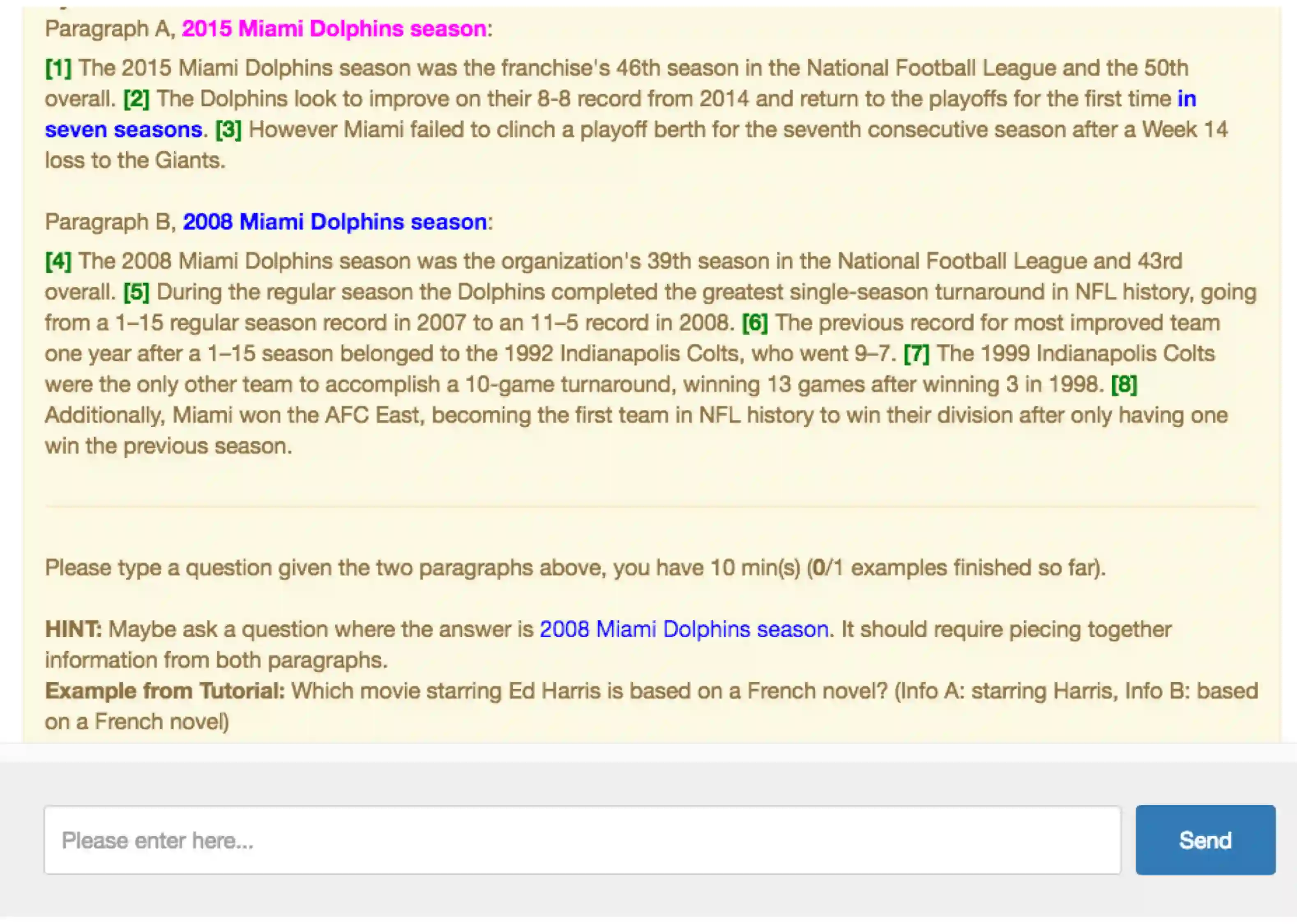 翻译:现有的回答问题(QA)数据集未能培训质量评估系统来进行复杂的推理和解释答案。我们引入了热锅QA,这是一个新的数据集,配有113k维基百科的问答对齐,有四个关键特征:(1) 问题需要找到和推理多种辅助文件才能回答;(2) 问题多种多样,不局限于先前存在的任何知识基础或知识体系;(3) 我们提供推理所需的判决级支持事实,使质量评估系统能够在强有力的监督下解释预测;(4) 我们提供一种新的事实类比较问题,以测试质量评估系统提取相关事实和进行必要的比较的能力。我们表明,热锅QA对最新的质量保证系统提出了挑战,而支持事实使模型能够改进性能和作出可解释的预测。