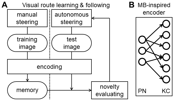 We compared the efficiency of the FlyHash model, an insect-inspired sparse neural network (Dasgupta et al., 2017), to similar but non-sparse models in an embodied navigation task. This requires a model to control steering by comparing current visual inputs to memories stored along a training route. We concluded the FlyHash model is more efficient than others, especially in terms of data encoding.