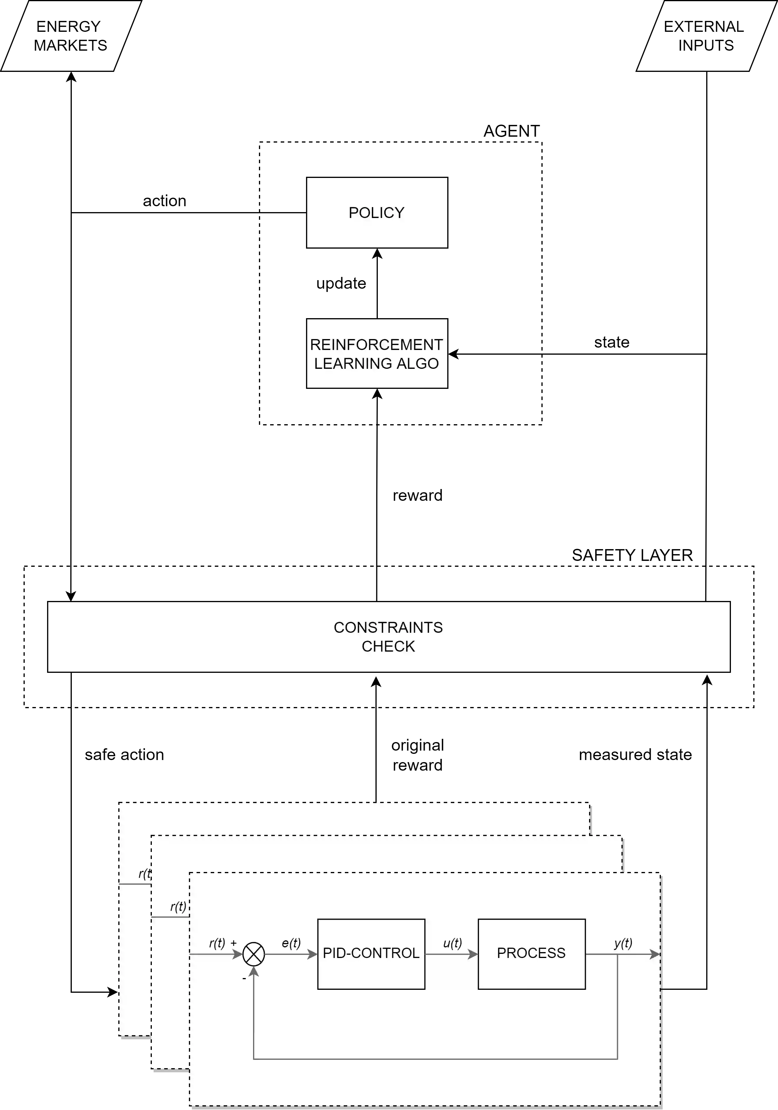 翻译:强化学习( RL) 是多能源管理系统中最有希望的最佳控制技术。 它不需要先验性的模式 — — 减少前期和当前具体项目的工程努力,并且能够学习更好的系统动态表征。 但是, Vasilla RL 不提供约束性满意度保证---- 导致在其安全危急环境中出现各种潜在的不安全互动。 在本文中, 我们介绍了两种新型的安全安全 RL 方法, 即Safe Fallback 和 GeletSafe, 安全限制配方与RL 配方脱钩。 这些方法提供了硬约束, 而不是软和机会约束。 在培训( 接近) 最佳政策( 涉及探索性和剥削性, 贪婪, 步骤) 以及部署任何政策( 例如随机剂或离线培训 RL 代理) 时, 都提供了满意度保障。 这不需要解决数学程序, 导致计算能力要求更少, 限制功能也更灵活( 不需要衍生信息 ) 。 在模拟多能源系统案例研究中, 我们证明, 两种方法都比R8858 和 Van- 5 标准方法都比标准标准( 5 ( ) 和 Van- bregle) 5 (i) 5 (i) 都比 标准 和 Ve) 5 ( 标准, 和 Van- breal) 5 (i) 5) 5) 5 (比标准 5) 5 (比 标准 5 5 5 5 (比 标准 标准 5) 5) 。