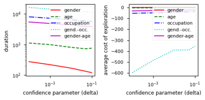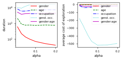 翻译:我们提议评估个性化推荐人制度的公平性,从无妒忌的意义上说:每个(群体)用户应该选择他们的建议,而不是其他(群体)用户的建议。对无妒忌的审计要求调查用户的偏好,以发现潜在的盲点,这可能会降低建议性能。为了控制勘探成本,我们建议基于纯探索和对多武装强盗保守限制的审计算法。我们从理论上和经验上研究这一算法的权衡。