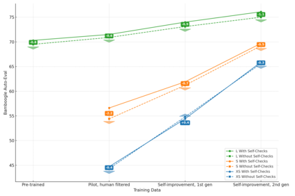 Answering complex natural language questions often necessitates multi-step reasoning and integrating external information. Several systems have combined knowledge retrieval with a large language model (LLM) to answer such questions. These systems, however, suffer from various failure cases, and we cannot directly train them end-to-end to fix such failures, as interaction with external knowledge is non-differentiable. To address these deficiencies, we define a ReAct-style LLM agent with the ability to reason and act upon external knowledge. We further refine the agent through a ReST-like method that iteratively trains on previous trajectories, employing growing-batch reinforcement learning with AI feedback for continuous self-improvement and self-distillation. Starting from a prompted large model and after just two iterations of the algorithm, we can produce a fine-tuned small model that achieves comparable performance on challenging compositional question-answering benchmarks with two orders of magnitude fewer parameters.