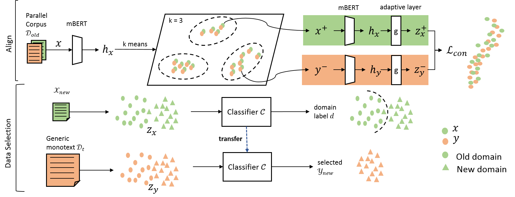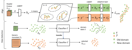 翻译:本文件考虑了神经机器翻译(NMT)的未经监督的域适应问题, 我们假设在新域中只能使用源语言或目标语言的单一语言文本。 我们提议了一种跨语言的数据选择方法, 从大通用单一语言的文体中提取缺失语言侧的部内句。 我们建议的方法通过对比学习,在多语种BERT之上培养适应层, 以调和源语言和目标语言的表达方式。 这样可以让域分类器在语言之间以零发方式转换。 一旦分类器检测到内部数据, NMT 模式就会通过联合学习翻译和域内歧视任务来适应新域。 我们用三对语言来评估我们关于NMT五个不同域的跨语言数据选择方法, 以及COVID-19的翻译真实世界情景。 结果显示, 我们的拟议方法超越了其他选择基线, 直至 +1.5 BLEU 分。