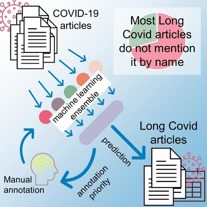 A significant percentage of COVID-19 survivors experience ongoing multisystemic symptoms that often affect daily living, a condition known as Long Covid or post-acute-sequelae of SARS-CoV-2 infection. However, identifying scientific articles relevant to Long Covid is challenging since there is no standardized or consensus terminology. We developed an iterative human-in-the-loop machine learning framework combining data programming with active learning into a robust ensemble model, demonstrating higher specificity and considerably higher sensitivity than other methods. Analysis of the Long Covid collection shows that (1) most Long Covid articles do not refer to Long Covid by any name (2) when the condition is named, the name used most frequently in the literature is Long Covid, and (3) Long Covid is associated with disorders in a wide variety of body systems. The Long Covid collection is updated weekly and is searchable online at the LitCovid portal: https://www.ncbi.nlm.nih.gov/research/coronavirus/docsum?filters=e_condition.LongCovid