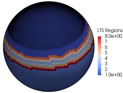 翻译:我们评估了在《全局预测模型》中实施的一套浅水方程式当地时间步(LTS)的绩效。 LTS的目标是通过在计算网的不同区域允许不同的时间步来加快模拟。这里考虑的LTS计划最初是由Hoang等人提出的(J.Compuut.Phys.,vol.382,p.152-176,2019),他们为方法奠定了数学基础。在这里,作者承担的任务是在高性能计算机器上快速、高效和可扩展地平行实施LTS方法,目的是为其他气候模型组提供一种配方,这些模型组可能有兴趣在计算网格的不同区域采用LTS算法。事实上,即使MPAS是我们的选择框架,我们的方法已经很笼统,而且可能对MPAS社区以外的其他群体感兴趣。LTS方法具有内在的负荷不平衡性,为了获得高效的可调和可伸缩性,我们在处理高性计算高性计算机操作程序时,更需要小心地处理LTS过程的正确速度,因此,在最短的轨道上,在计算最短的轨道上要紧的轨道上,这是一个最短的轨道上,在最短的轨道上,在最短的轨道上要的轨道上,在计算一个最短的轨道上,在最短的轨道上,也就是的轨道上,在计算一个最短的轨道上,也就是的轨道上,在计算一个过程是,在目前的工作程序是,在最短的轨道上,在最短的轨道上进行。