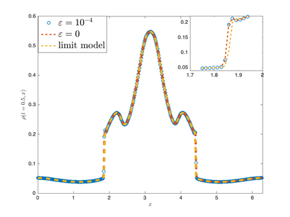 We propose and study a fully implicit finite volume scheme for the pressureless Euler-Poisson-Boltzmann equations on the one dimensional torus. Especially, we design a consistent and dissipative discretization of the force term which yields an unconditional energy decay. In addition, we establish a discrete analogue of the modulated energy estimate around constant states with a small velocity. Numerical experiments are carried to illustrate our theoretical results and to assess the accuracy of our scheme. A test case of the literature is also illustrated.