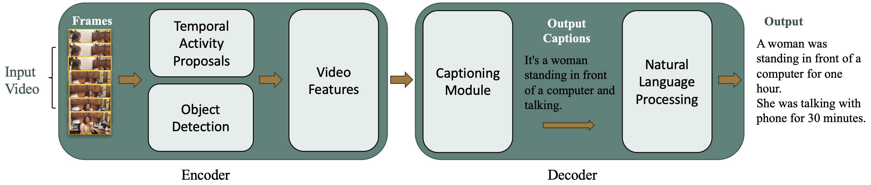 Video Captioning is considered to be one of the most challenging problems in the field of computer vision. Video Captioning involves the combination of different deep learning models to perform object detection, action detection, and localization by processing a sequence of image frames. It is crucial to consider the sequence of actions in a video in order to generate a meaningful description of the overall action event. A reliable, accurate, and real-time video captioning method can be used in many applications. However, this paper focuses on one application: video captioning for fostering and facilitating physical activities. In broad terms, the work can be considered to be assistive technology. Lack of physical activity appears to be increasingly widespread in many nations due to many factors, the most important being the convenience that technology has provided in workplaces. The adopted sedentary lifestyle is becoming a significant public health issue. Therefore, it is essential to incorporate more physical movements into our daily lives. Tracking one's daily physical activities would offer a base for comparison with activities performed in subsequent days. With the above in mind, this paper proposes a video captioning framework that aims to describe the activities in a video and estimate a person's daily physical activity level. This framework could potentially help people trace their daily movements to reduce an inactive lifestyle's health risks. The work presented in this paper is still in its infancy. The initial steps of the application are outlined in this paper. Based on our preliminary research, this project has great merit.