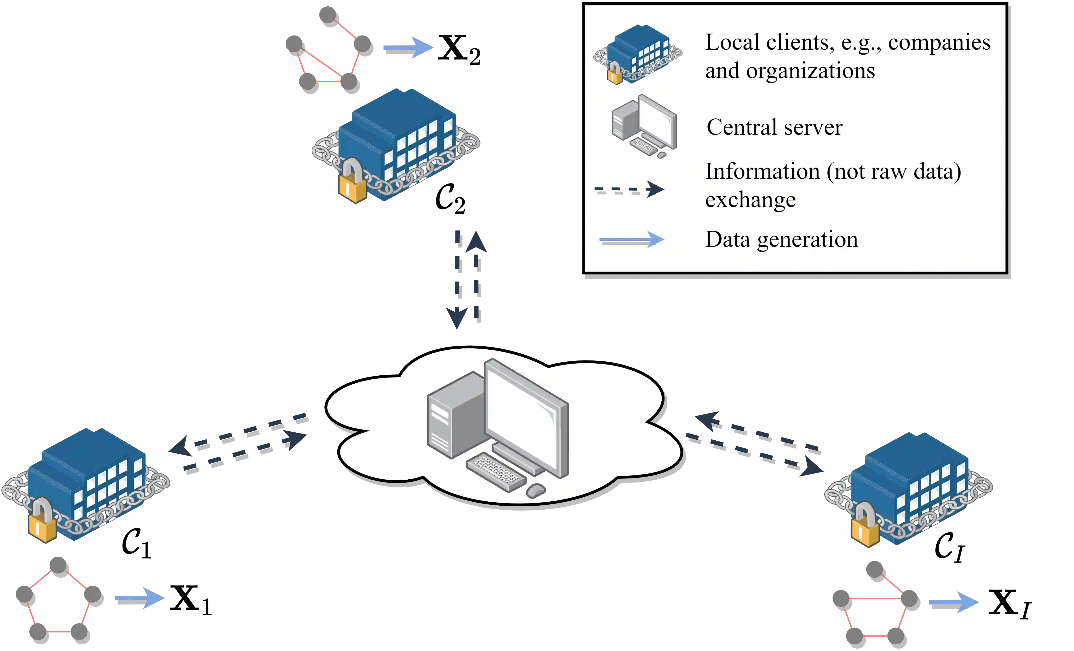 We consider the problem of inferring graph topology from smooth graph signals in a novel but practical scenario where data are located in distributed clients and prohibited from leaving local clients due to factors such as privacy concerns. The main difficulty in this task is how to exploit the potentially heterogeneous data of all clients under data silos. To this end, we first propose an auto-weighted multiple graph learning model to jointly learn a personalized graph for each local client and a single consensus graph for all clients. The personalized graphs match local data distributions, thereby mitigating data heterogeneity, while the consensus graph captures the global information. Moreover, the model can automatically assign appropriate contribution weights to local graphs based on their similarity to the consensus graph. We next devise a tailored algorithm to solve the induced problem, where all raw data are processed locally without leaving clients. Theoretically, we establish a provable estimation error bound and convergence analysis for the proposed model and algorithm. Finally, extensive experiments on synthetic and real data are carried out, and the results illustrate that our approach can learn graphs effectively in the target scenario.