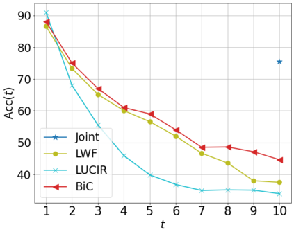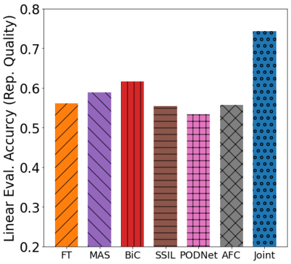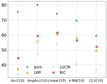 Class incremental learning (CIL) algorithms aim to continually learn new object classes from incrementally arriving data while not forgetting past learned classes. The common evaluation protocol for CIL algorithms is to measure the average test accuracy across all classes learned so far -- however, we argue that solely focusing on maximizing the test accuracy may not necessarily lead to developing a CIL algorithm that also continually learns and updates the representations, which may be transferred to the downstream tasks. To that end, we experimentally analyze neural network models trained by CIL algorithms using various evaluation protocols in representation learning and propose new analysis methods. Our experiments show that most state-of-the-art algorithms prioritize high stability and do not significantly change the learned representation, and sometimes even learn a representation of lower quality than a naive baseline. However, we observe that these algorithms can still achieve high test accuracy because they enable a model to learn a classifier that closely resembles an estimated linear classifier trained for linear probing. Furthermore, the base model learned in the first task, which involves single-task learning, exhibits varying levels of representation quality across different algorithms, and this variance impacts the final performance of CIL algorithms. Therefore, we suggest that the representation-level evaluation should be considered as an additional recipe for more diverse evaluation for CIL algorithms.