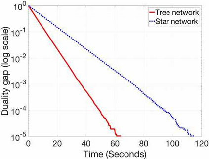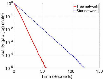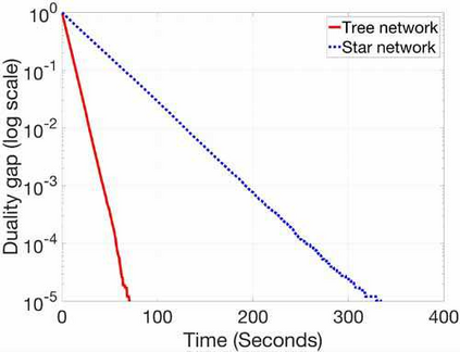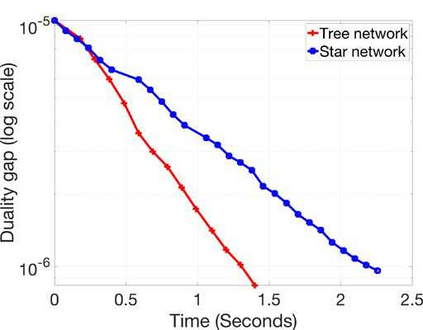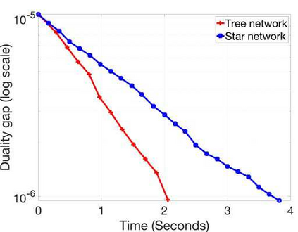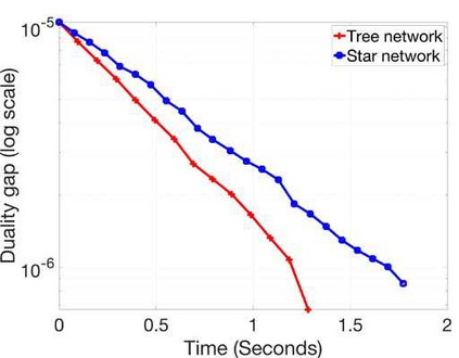 翻译:由于数据庞大,单一计算机或单一服务器的数据储存量有限,因此数据往往以分布方式储存。因此,往往需要利用通信网络的分布式数据集进行大型机器学习作业,通过通信网络进行分布式数据集的大规模机器学习作业。在本文件中,我们研究分布式双协调率对于分布式机器学习问题在一般树类结构型网络中分布式双协调率的趋同率。由于可以将树类网络模型理解为星类网络模型的普及性,因此,我们的算法可以被理解为分布式双协调在星类网络模型中的普及性双重协调。我们以循环方式提供分布式双协调率高于一般树类网络的趋同率,并分析网络对汇合率的影响。第二,我们通过考虑网络通信的延误,优化分布式双协调式的双重协调算法,以最大限度地加快其趋同速度。我们可以根据通信的延迟性选择本地循环的最佳数目,以达到最快的趋同速度。在数字实验中,我们考虑机器学习的情景,因为当地工人由于通信的制约而无法直接达到一个中心节点,并且分析网络对趋同率的影响。我们所分布式的双重协调式的网络可以改进其分布式计算方法,从而改进了我们分布式网络的网络的升级性。