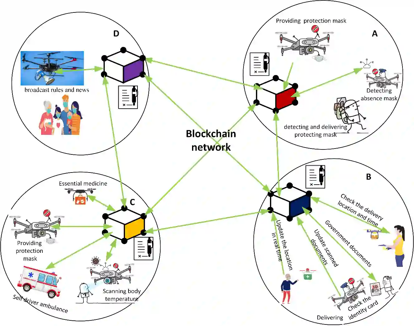 翻译:目前,无人驾驶飞机是2019年科罗纳病毒(COVID-19)防治科罗纳病毒疾病(COVID-19)的一个大有希望的技术,因为运输货物、向正在爆发流行病的检疫区特定目标地点提供医疗用品,无人机飞行任务将日益依赖无人机协作,这要求无人机减少通信复杂性,并以分散的方式加以控制。由于提供分散的数据、可获取性、不可移动性和不可逆性,因此在工业应用中必须采用链式技术。因此, " 链链 " 将所有无人机的数据公诸于众,并使无人机能够记录有关世界各州、时间、地点、资源、交付数据和无人机与所有邻国无人机的关系的信息。本文介绍了分散的独立多轨,以协作的方式完成任务。用协商一致算法改进连锁链可以改善网络的分割和可缩放性,以打击COVI-19。多轨技术的任务是通过监测和检测、社会疏漏、营养化、数据分析、提供货物和医疗用品以及宣布,同时避免与另一个国家发生碰撞。我们讨论“最终”(E2E)交付混合链和多盘化框架的未来机遇。