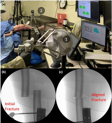 In the face of challenges encountered during femur fracture surgery, such as the high rates of malalignment and X-ray exposure to operating personnel, robot-assisted surgery has emerged as an alternative to conventional state-of-the-art surgical methods. This paper introduces the development of Robossis, a haptic system for robot-assisted femur fracture surgery. Robossis comprises a 7-DOF haptic controller and a 6-DOF surgical robot. A unilateral control architecture is developed to address the kinematic mismatch and the motion transfer between the haptic controller and the Robossis surgical robot. A real-time motion control pipeline is designed to address the motion transfer and evaluated through experimental testing. The analysis illustrates that the Robossis surgical robot can adhere to the desired trajectory from the haptic controller with an average translational error of 0.32 mm and a rotational error of 0.07 deg. Additionally, a haptic rendering pipeline is developed to resolve the kinematic mismatch by constraining the haptic controller (user hand) movement within the permissible joint limits of the Robossis surgical robot. Lastly, in a cadaveric lab test, the Robossis system assisted surgeons during a mock femur fracture surgery. The result shows that Robossis can provide an intuitive solution for surgeons to perform femur fracture surgery.