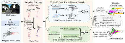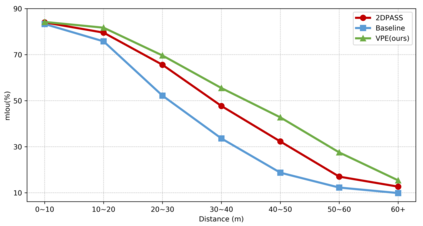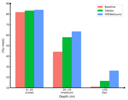 LiDAR-based 3D point cloud recognition has been proven beneficial in various applications. However, the sparsity and varying density pose a significant challenge in capturing intricate details of objects, particularly for medium-range and small targets. Therefore, we propose a multi-modal point cloud semantic segmentation method based on Virtual Point Enhancement (VPE), which integrates virtual points generated from images to address these issues. These virtual points are dense but noisy, and directly incorporating them can increase computational burden and degrade performance. Therefore, we introduce a spatial difference-driven adaptive filtering module that selectively extracts valuable pseudo points from these virtual points based on density and distance, enhancing the density of medium-range targets. Subsequently, we propose a noise-robust sparse feature encoder that incorporates noise-robust feature extraction and fine-grained feature enhancement. Noise-robust feature extraction exploits the 2D image space to reduce the impact of noisy points, while fine-grained feature enhancement boosts sparse geometric features through inner-voxel neighborhood point aggregation and downsampled voxel aggregation. The results on the SemanticKITTI and nuScenes, two large-scale benchmark data sets, have validated effectiveness, significantly improving 2.89\% mIoU with the introduction of 7.7\% virtual points on nuScenes.