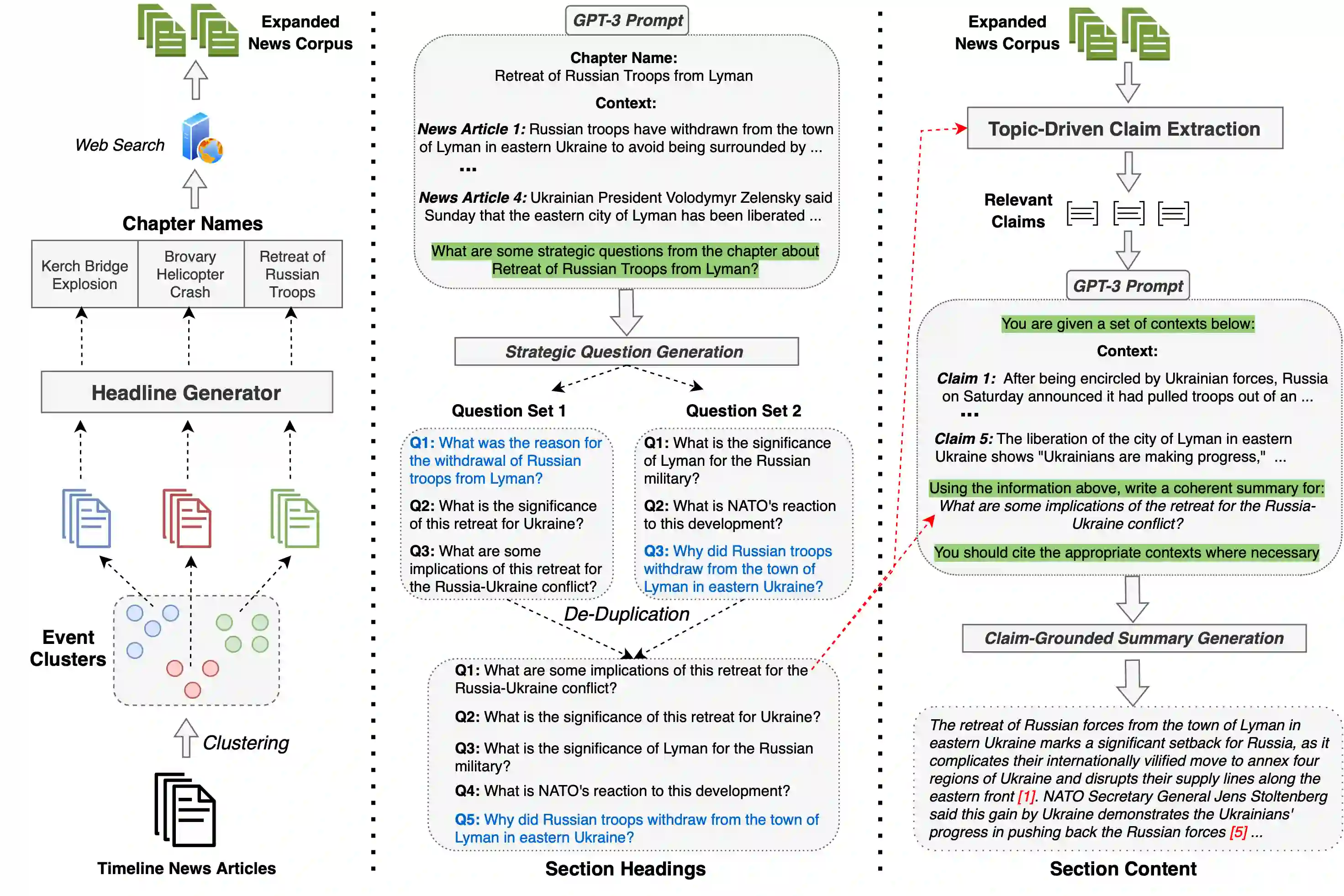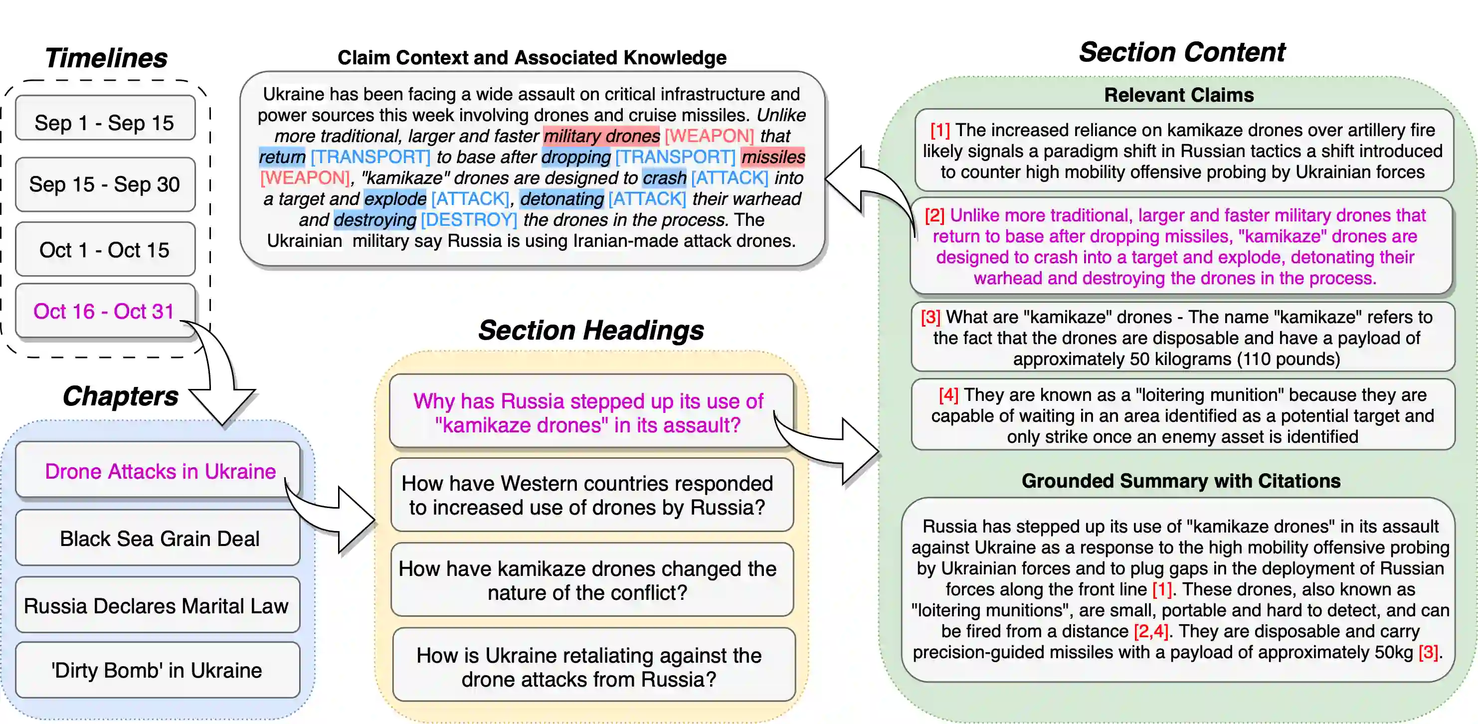 翻译:新冠疫情和乌克兰危机等新兴事件需要迅速全面地了解形势,以便做出适当的决策和有效的行动响应。自动生成态势报告可以显著减少领域专家准备官方人工编写报告的时间、精力和成本。然而,针对这一目标的AI研究非常有限,尚未进行过成功的试验来自动化此类报告的生成。我们提出了SmartBook,一种新颖的任务形式,旨在生成态势报告,它消耗大量新闻数据以生成带有多个假设(声明)的结构化态势报告,并通过丰富的连结将其与事实结合起来。我们通过自动化生成情报分析报告来实现SmartBook,以协助专家分析师。机器生成的报告以时间轴的形式进行结构化,每个时间轴都按主要事件(或章节)、相应的战略问题(或部分)及其基础摘要(或部分内容)进行组织。我们的提议框架自动检测实时事件相关的战略问题,它们比手动制作的分析师问题更为直接,后者往往过于复杂、难于解析、模糊和高层次。充分的定性评估结果表明,SmartBook中约82%的问题具有战略重要性,报告中至少93%的部分具有战术用途。此外,实验表明,专家分析师倾向于在SmartBook报告中添加更多信息,仅删除了2.3%的现有代币,这意味着SmartBook可以作为分析师创建情报报告时的有用基础。