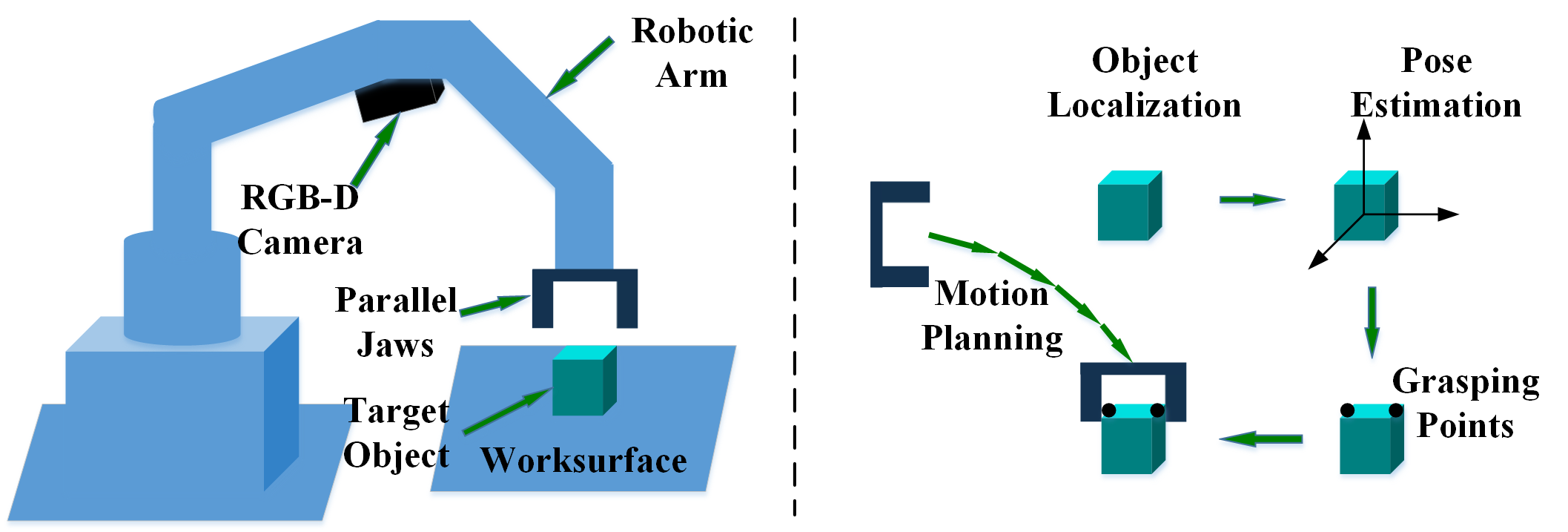 翻译:本文介绍了关于基于愿景的机器人掌握的全面调查。我们在机器人掌握期间完成了四项关键任务,即物体定位、显示估计、掌握探测和运动规划。详细来说,物体定位包括物体探测和分离方法,包括基于RGB和RGB-D的方法,掌握探测包括传统方法和深层次学习方法,运动规划包括分析方法、模仿学习方法以及强化学习方法。此外,许多方法联合完成一些任务,例如物体探测-结合6D构成估计、在不构成估计的情况下掌握探测、端到端发现探测和端到端运动规划。在本调查中对这些方法进行了详细审查。更多的是,对相关数据集进行了总结,对每一项任务都进行了最新方法的比较。提出了机器人掌握方面的挑战,并提出了应对这些挑战的未来方向。