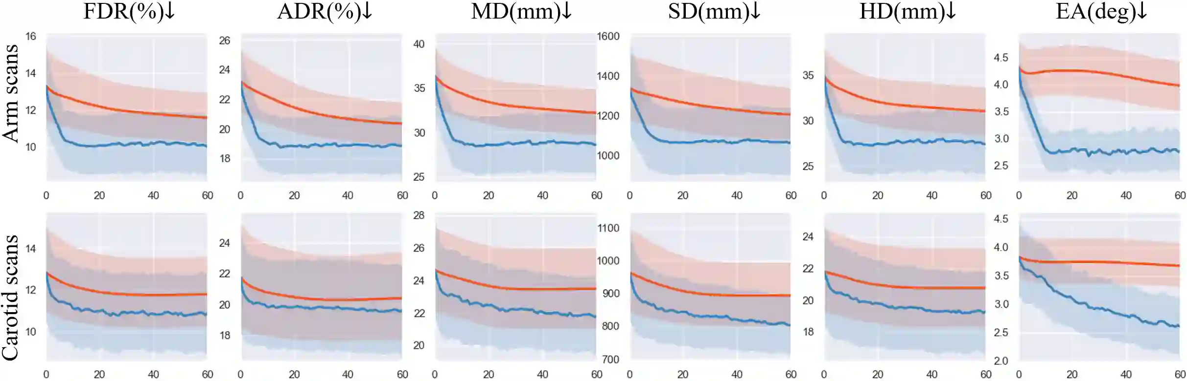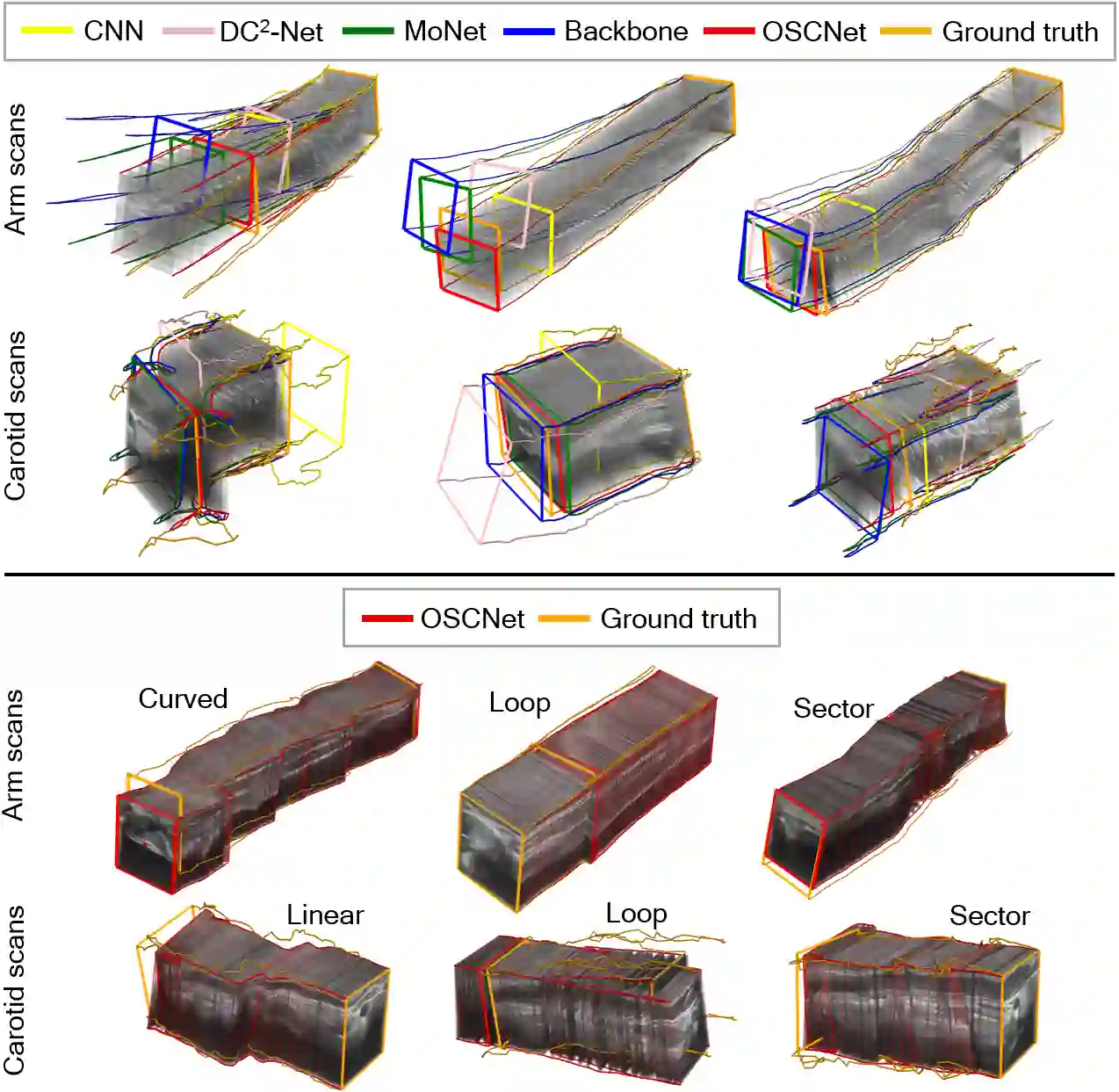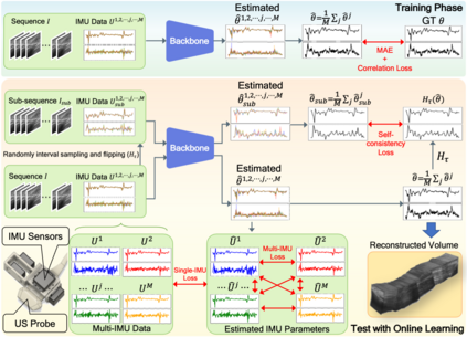 Ultrasound (US) imaging is a popular tool in clinical diagnosis, offering safety, repeatability, and real-time capabilities. Freehand 3D US is a technique that provides a deeper understanding of scanned regions without increasing complexity. However, estimating elevation displacement and accumulation error remains challenging, making it difficult to infer the relative position using images alone. The addition of external lightweight sensors has been proposed to enhance reconstruction performance without adding complexity, which has been shown to be beneficial. We propose a novel online self-consistency network (OSCNet) using multiple inertial measurement units (IMUs) to improve reconstruction performance. OSCNet utilizes a modal-level self-supervised strategy to fuse multiple IMU information and reduce differences between reconstruction results obtained from each IMU data. Additionally, a sequence-level self-consistency strategy is proposed to improve the hierarchical consistency of prediction results among the scanning sequence and its sub-sequences. Experiments on large-scale arm and carotid datasets with multiple scanning tactics demonstrate that our OSCNet outperforms previous methods, achieving state-of-the-art reconstruction performance.