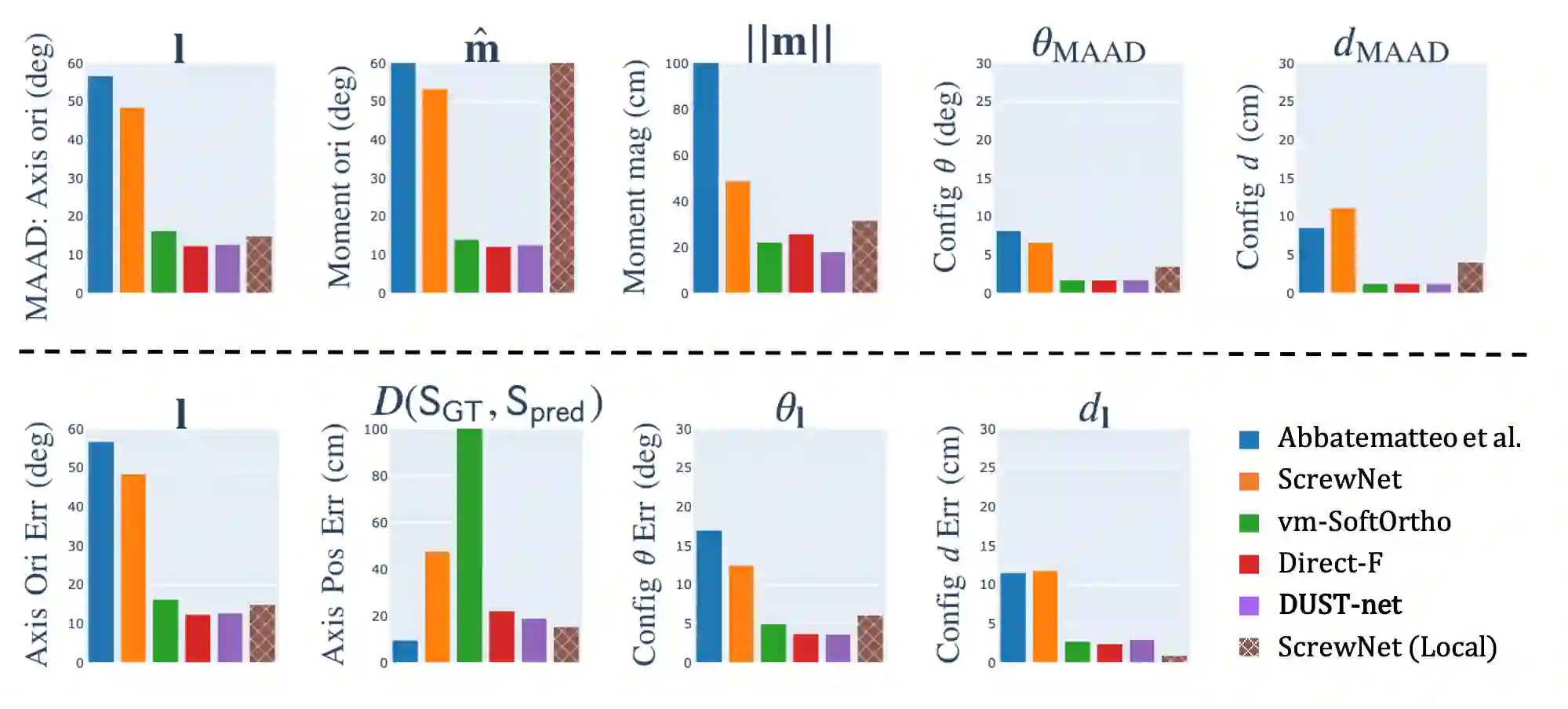 翻译:我们建议一种方法,即从深度图像直接从表达模型参数上有效学习分布,而不需要先验地了解表达模型的模型类别。相比之下,从原始观测中学习表达模型的现有方法通常只是预测模型参数的点数估计数,这些估计数不足以保证对表达对象的安全操作。我们的核心贡献包括:以螺丝理论、冯·米塞-费舍分布和Stiefel 等标准为基础,对僵硬体变形和变形模型参数的分布进行新颖的表述;将这些概念结合起来,就能够实现高效、数学上健全的表述,隐含地满足僵硬体变形和变形必须遵守的限制因素。利用这一表述,我们引入了一种新的深层次的基于学习的方法,即Dust-net,该方法在进行独立的分类变形模型估计的同时提供模型不确定性。我们评估了几个基准数据集和真实世界对象的分布方法,并将其业绩与目前两种最先进的方法进行比较。我们的结果表明,Dust-net能够成功地了解新对象的变形模型的分布模式,从而产生比状态更精确的精确的点估计数,并有效测量预测模型的参数。