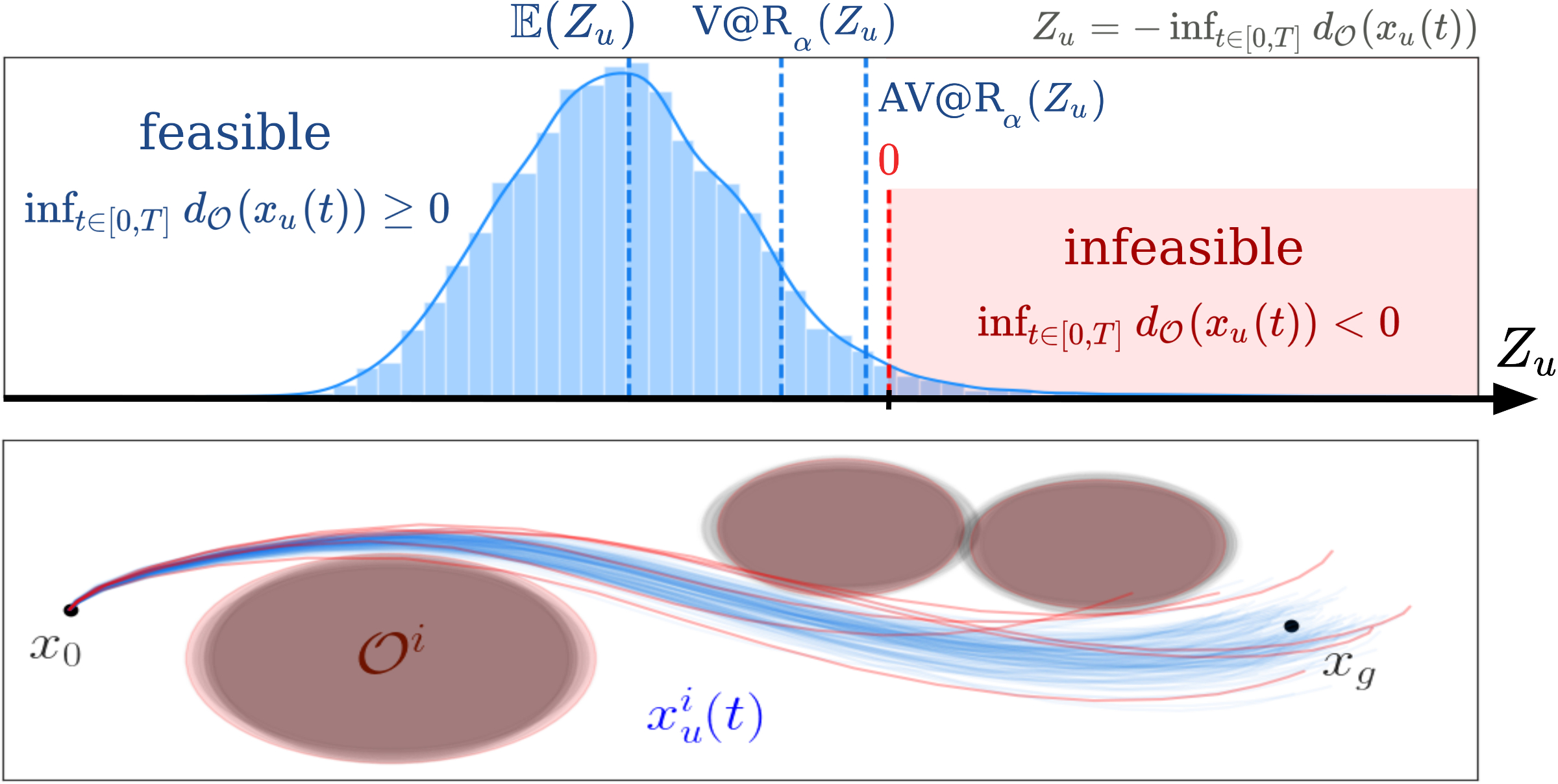 Trajectory optimization under uncertainty underpins a wide range of applications in robotics. However, existing methods are limited in terms of reasoning about sources of epistemic and aleatoric uncertainty, space and time correlations, nonlinear dynamics, and non-convex constraints. In this work, we first introduce a continuous-time planning formulation with an average-value-at-risk constraint over the entire planning horizon. Then, we propose a sample-based approximation that unlocks an efficient, general-purpose, and time-consistent algorithm for risk-averse trajectory optimization. We prove that the method is asymptotically optimal and derive finite-sample error bounds. Simulations demonstrate the high speed and reliability of the approach on problems with stochasticity in nonlinear dynamics, obstacle fields, interactions, and terrain parameters.