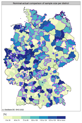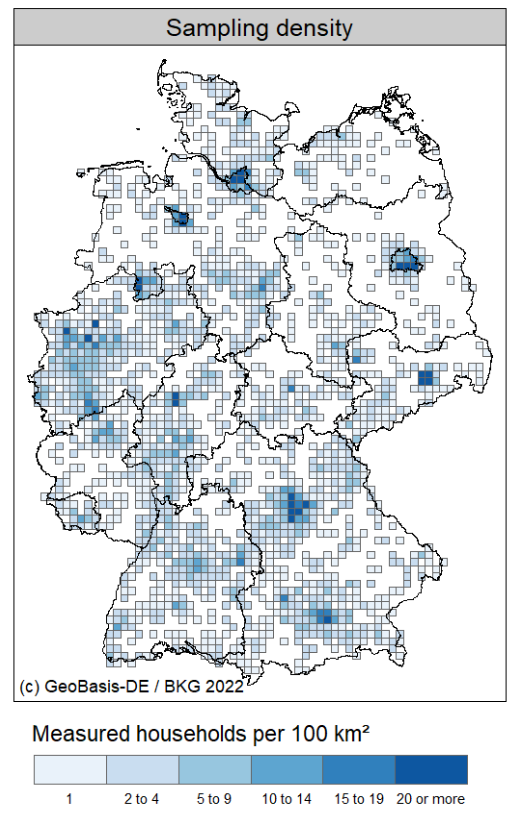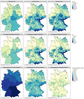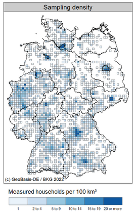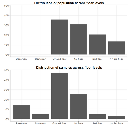 Radon is a carcinogenic, radioactive gas that can accumulate indoors. Therefore, accurate knowledge of indoor radon concentration is crucial for assessing radon-related health effects or identifying radon-prone areas. Indoor radon concentration at the national scale is usually estimated on the basis of extensive measurement campaigns. However, characteristics of the sample often differ from the characteristics of the population due to the large number of relevant factors that control the indoor radon concentration such as the availability of geogenic radon or floor level. Furthermore, the sample size usually does not allow estimation with high spatial resolution. We propose a model-based approach that allows a more realistic estimation of indoor radon distribution with a higher spatial resolution than a purely data-based approach. A two-stage modelling approach was applied: 1) a quantile regression forest using environmental and building data as predictors was applied to estimate the probability distribution function of indoor radon for each floor level of each residential building in Germany; (2) a probabilistic Monte Carlo sampling technique enabled the combination and population weighting of floor-level predictions. In this way, the uncertainty of the individual predictions is effectively propagated into the estimate of variability at the aggregated level. The results show an approximate lognormal distribution with an arithmetic mean of 63 Bq/m3, a geometric mean of 41 Bq/m3 and a 95 %ile of 180 Bq/m3. The exceedance probability for 100 Bq/m3 and 300 Bq/m3 are 12.5 % (10.5 million people) and 2.2 % (1.9 million people), respectively.