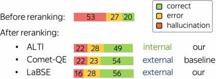 翻译:虽然神经机翻译中的幻觉问题早已得到承认,但到目前为止,在缓解这种幻觉方面进展甚微。事实上,最近的结果是,没有人为地鼓励幻觉模型,现有的方法就不足,甚至标准序列日志概率也比较丰富。这意味着模型的内部特征能够提供比我们预期的更多信息,在使用外部模型和措施之前,我们首先需要问:如果我们除了翻译模型本身之外什么都不使用,我们还能走多远?我们建议使用一种方法来评估源对生成翻译的贡献比例。我们建议使用一种方法来评估源对生成翻译的贡献比例。直观地说,幻觉是从源中“显示”的翻译,因此可以用低源贡献来识别。这种方法可以提高最严重幻觉的检测精度,以2倍的系数来提高检测精度,并且能够在试验时与依赖外部模型的先前最佳方法一样减轻幻觉。此外,如果我们远离内部模型特性并允许外部工具,我们建议使用一种方法来评估来源对生成翻译的贡献比例的方法。我们建议使用一种方法,即用跨语言嵌入的句相近度来进一步改进这些结果。