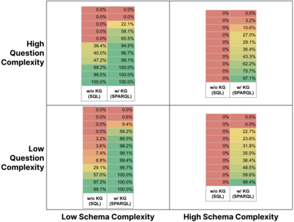Enterprise applications of Large Language Models (LLMs) hold promise for question answering on enterprise SQL databases. However, the extent to which LLMs can accurately respond to enterprise questions in such databases remains unclear, given the absence of suitable Text-to-SQL benchmarks tailored to enterprise settings. Additionally, the potential of Knowledge Graphs (KGs) to enhance LLM-based question answering by providing business context is not well understood. This study aims to evaluate the accuracy of LLM-powered question answering systems in the context of enterprise questions and SQL databases, while also exploring the role of knowledge graphs in improving accuracy. To achieve this, we introduce a benchmark comprising an enterprise SQL schema in the insurance domain, a range of enterprise queries encompassing reporting to metrics, and a contextual layer incorporating an ontology and mappings that define a knowledge graph. Our primary finding reveals that question answering using GPT-4, with zero-shot prompts directly on SQL databases, achieves an accuracy of 16%. Notably, this accuracy increases to 54% when questions are posed over a Knowledge Graph representation of the enterprise SQL database. Therefore, investing in Knowledge Graph provides higher accuracy for LLM powered question answering systems.